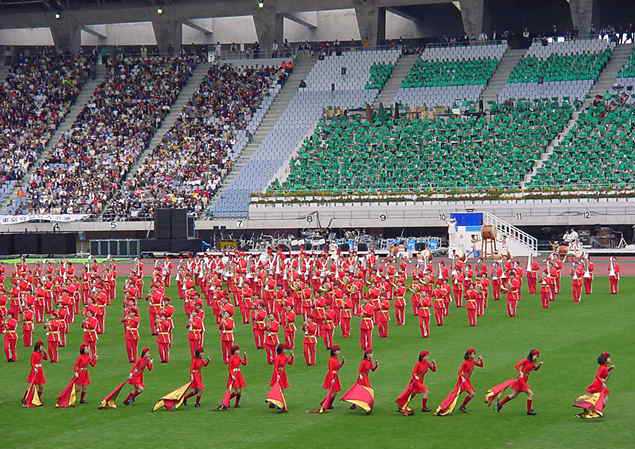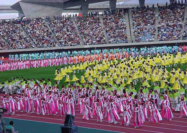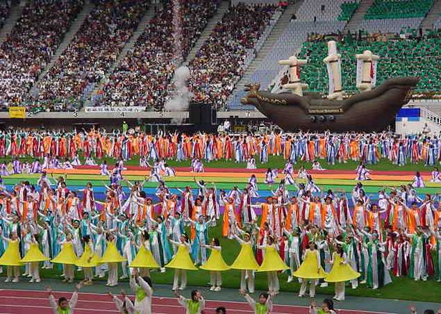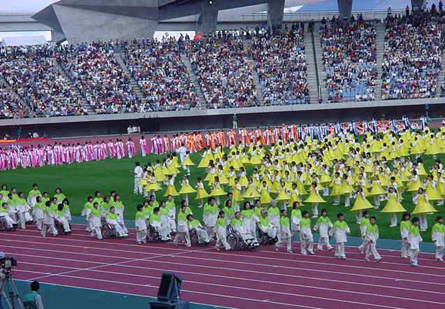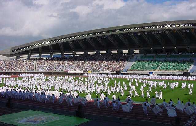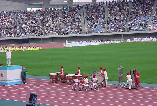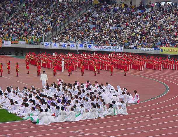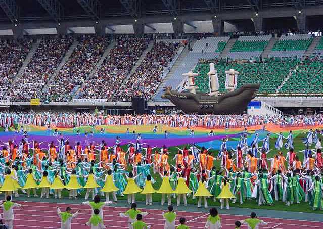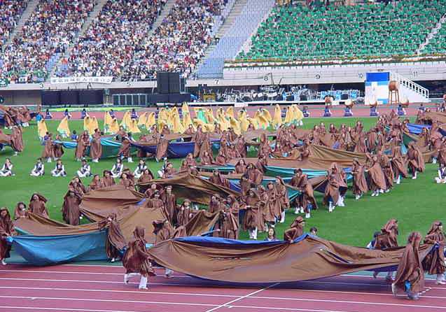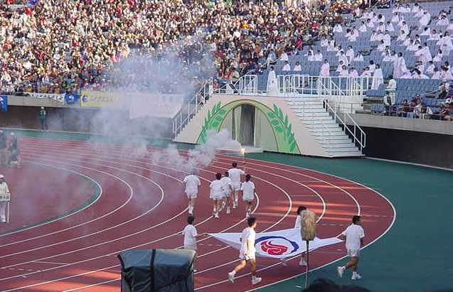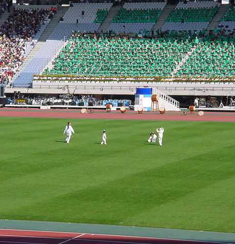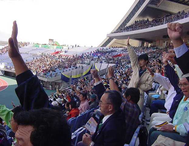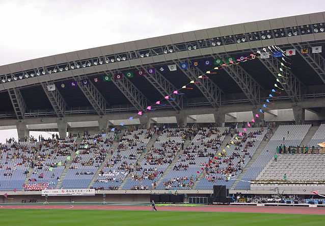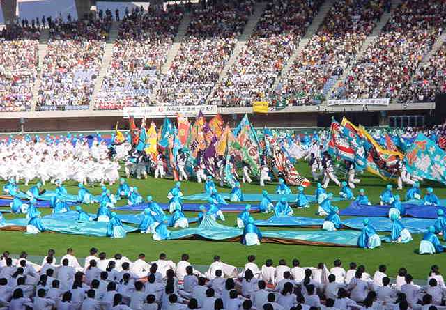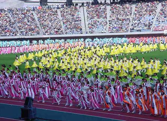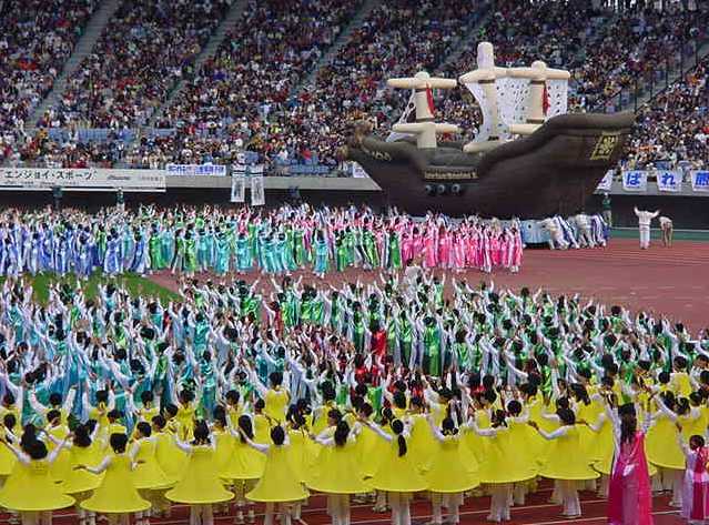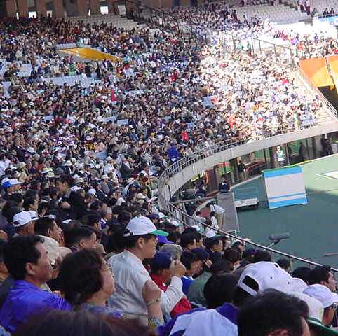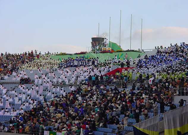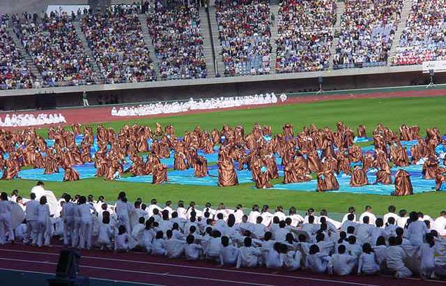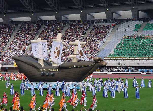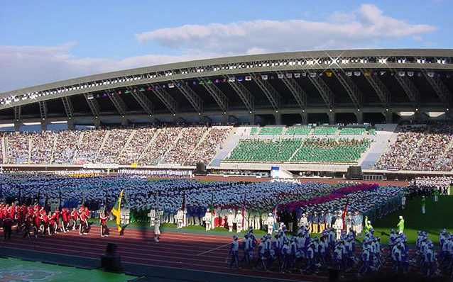 宮城国体秋期大会開会式視察レポート2001年10月 長嶋洋一2003静岡国体・SUAC式典プロデュースチームの一員として、去年の富山国体 の4回の視察に続いて、今年も宮城国体に計4回、視察に行くことになりました。 今回は、10/13の秋期大会開会式の模様です。