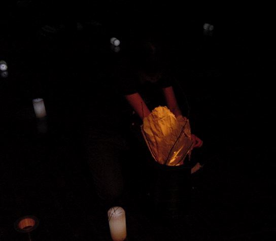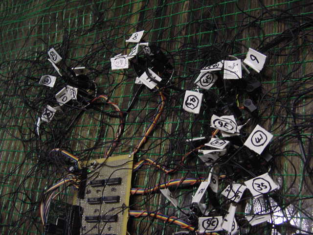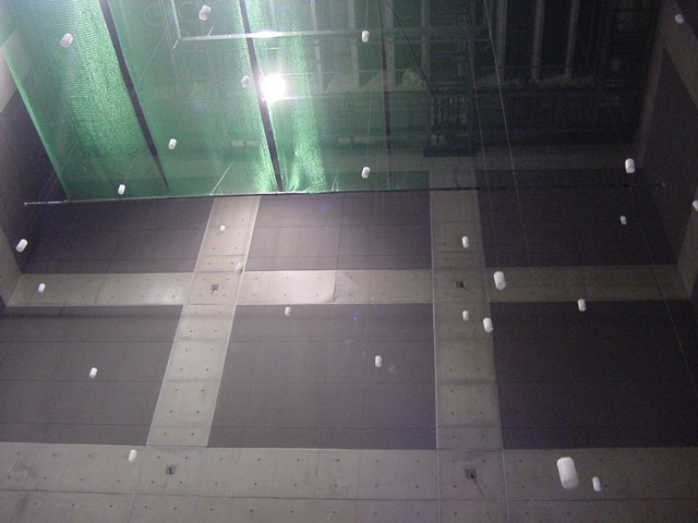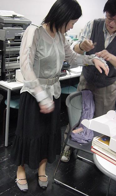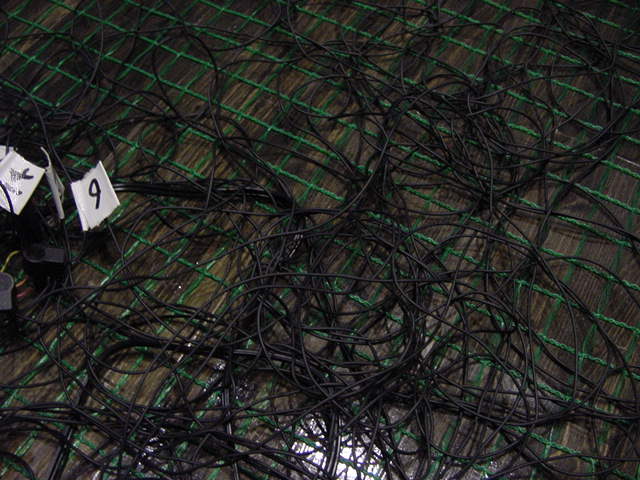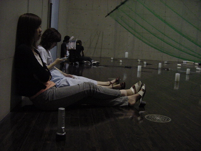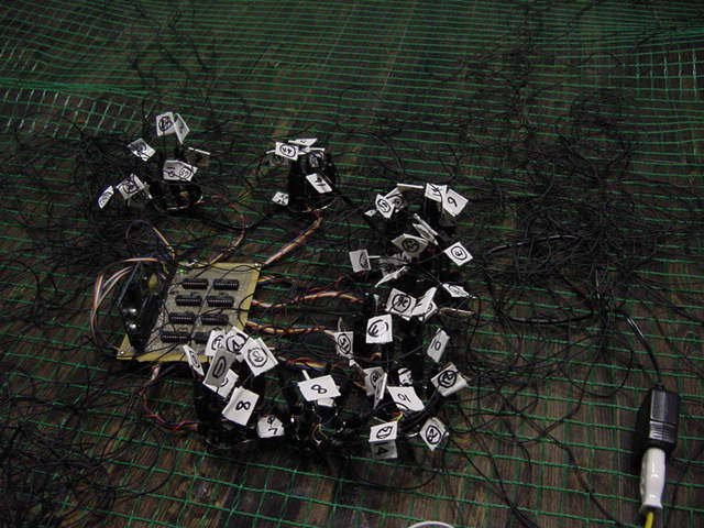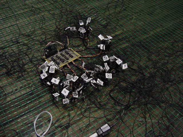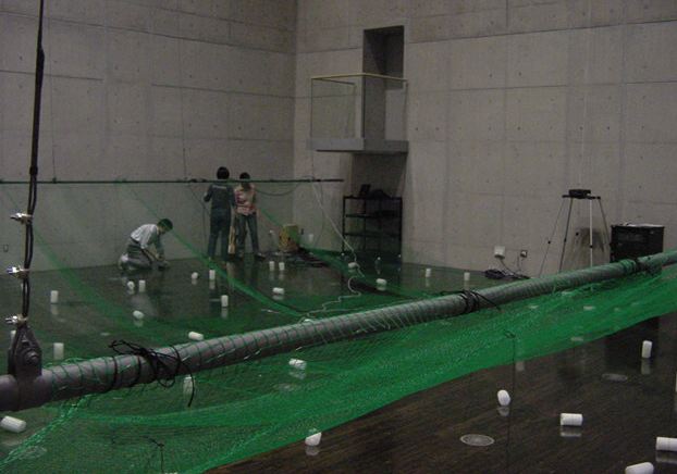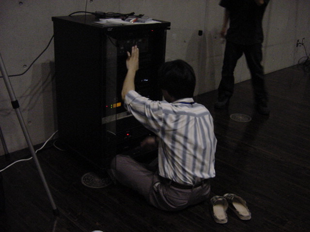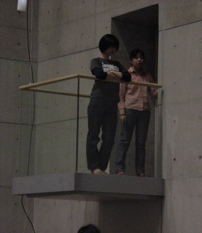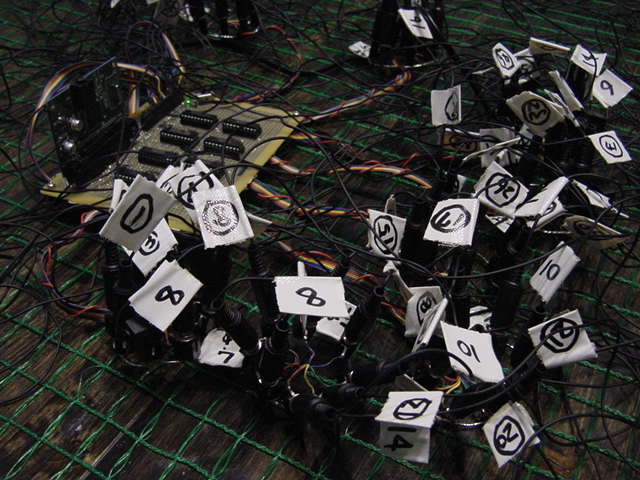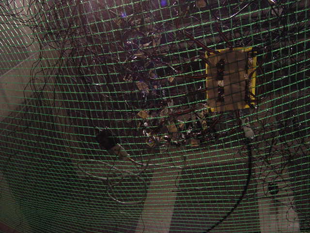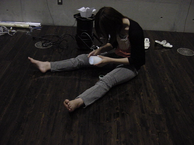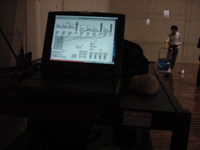 「第13期虎の穴」のメンバーによる「靄夜II」(もや)の メイキング風景です。 6月9日の設置2日目は、「靄夜II」でパフォーマンスをしていただく 川村武子さんを迎えて、センサの検証などもからめていろいろ実験 しました。