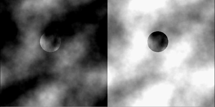 「第3問」は背景画像と50%明度の円形画像の透過重ね合わせ画像の 部分は左右で共通、背景は左右で明度反転画像としてあります。