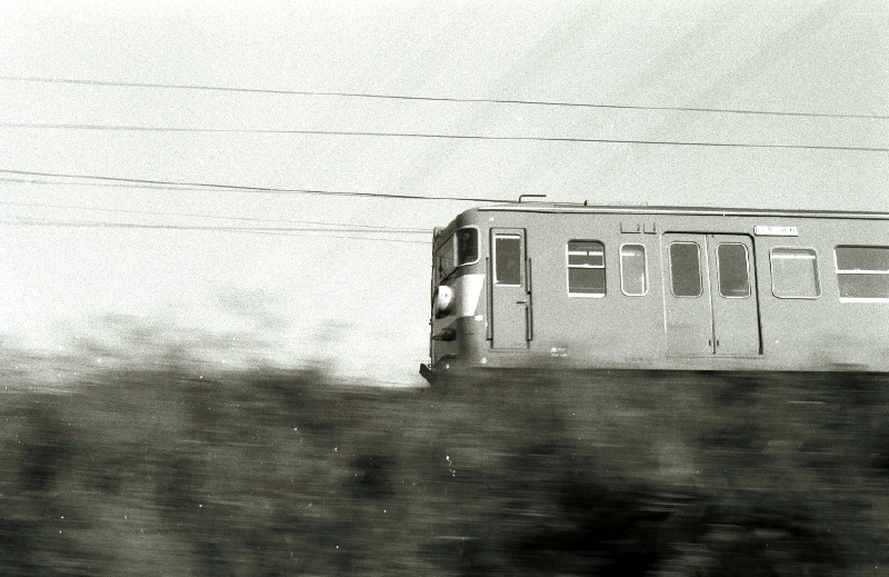 動いている列車にしっかりピントが合っているわけですから、現場では、三脚でなくカメラを