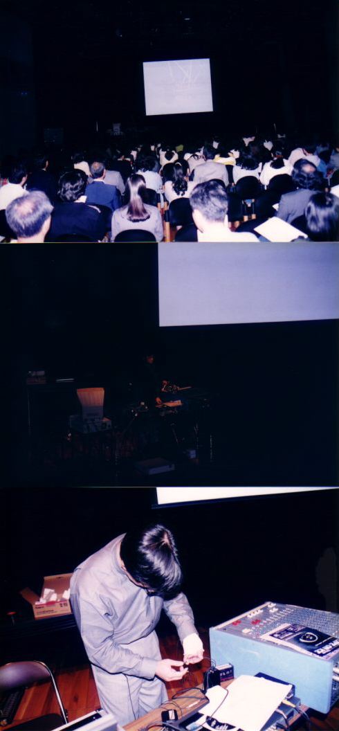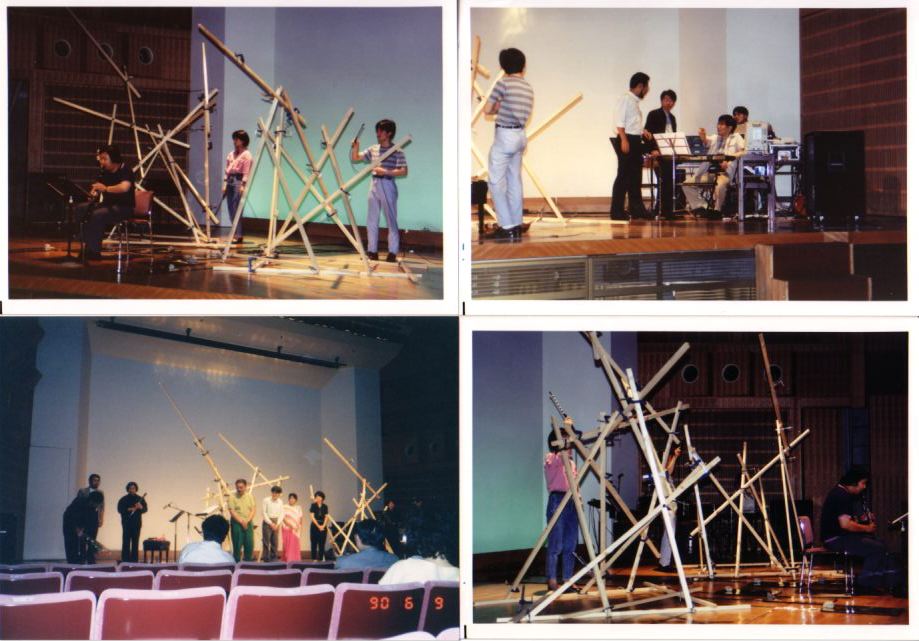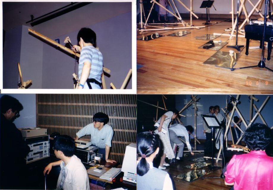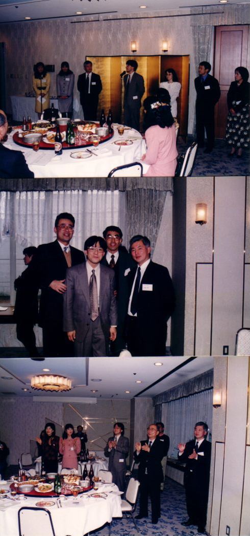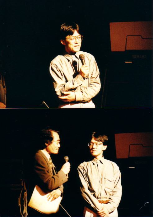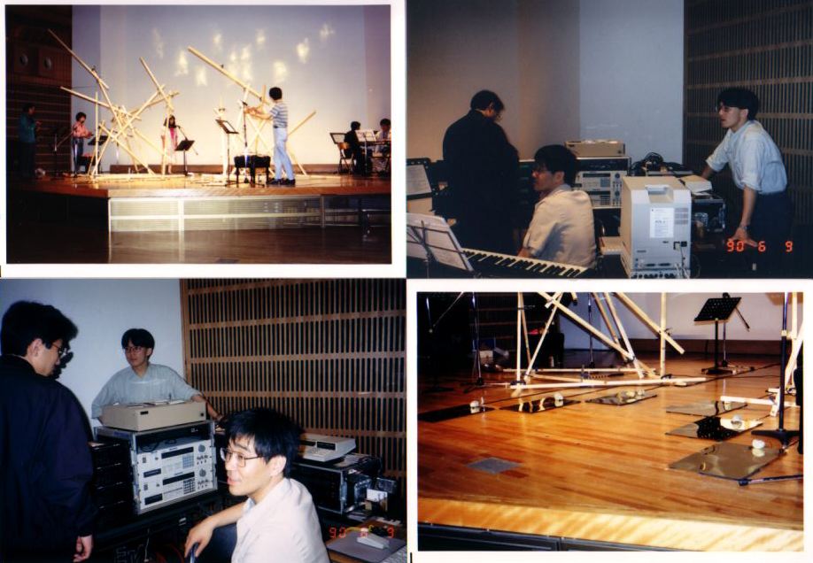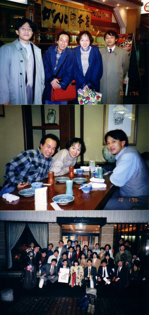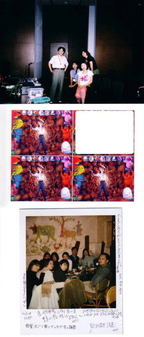 ★ ★ ★ ★ ★ これが今回の写真発掘のキッカケとなった、かつての職場から発掘 された写真です。現代音楽の師匠である中村滋延さんのシステム開発 に協力して、たぶん「音楽之友社ホール」でのコンサートかと 思うのですが、いろいろ準備して公演した模様です。 ★ これはたぶん、サンノゼ大学で開催されたICMC1992の ポスターセッションで発表しているところだと思います。 ★ これはたぶん、早稲田大学国際会議場で開催したICMC1993の ポスターセッションで発表しているところだと思います。 ★ これは、IRCAMで活躍している、お友達の作曲家、後藤英(スグル)さん。 まだ面識がなかった時代に、突然にオリジナルのセンサ(インターフェース)の 開発を依頼してきた時の自己紹介資料に添えられていた写真です。 今見ても、十分にアヤシイです。(^_^;) ★ これは、1999年の ICMC1999北京の時のもので、 イギリスで大学の先生をしている板垣さんが送ってくれたものです。 ★ Niftyに「合唱フォーラム」というのがありまして・・・という話をすると 数時間が必要なので、パス(^_^;)。要するに「うた仲間」の、ぶたこはんとたこぶはん などと一緒の写真です。いちばん下の写真は所謂「合唱オフ」というものですが、 これまた説明すると長くなるので。 ★ これは浜名湖畔にある「鯛湖亭」というところで行った「合唱オフ」の 写真で、この巨大なのはタリスの40声の有名なモテットの楽譜です。 B2サイズの1ページに縦に40段という楽譜で、当然ですが40パートは 全て異なる音で、さらにポリフォニーなのでほとんど全てのところで 歌詞も別々になります。楽譜を音にするのに最低でも40人が必要なの ですが、このオフにはその半分ぐらいしかいませんでした。この楽譜を Tシャツにして着ている人もいますね。 ★ ★ これは何年か前に、小学校の恩師を囲んで、初めての同窓会に水戸まで行った時の写真です。 こんなおじさんおばさんの写真を関係者以外が見ても何にもなりませんが、 要するに年令がほぼプラスマイナス1才ぐらいの同窓生、ということです。 ★ ★ これ数年前、まだ神戸山手女子短大音楽科で教えていて、ジーベックホールが 元気だった頃のものです。山手の公開講演会をジーベックで行った時の模様の ようです。 ★ ★ これも数年前、ジーベックホールでJACOM(日本コンピュータ 音楽協会)のコンサートを行った時のものです。 カオスをComputer Musicに使った作品でピアノに鉄板とか 鎖を投げ込んでいるのは吉田幸代さんです。 ★ これはお仕事モードで講演会をした時の写真を、後日、静岡県中小企業診断士協会が 送ってきたものです。スーツがばっちり似合っていません。(^_^;) ★ ★ ★ これは一昨年の9月に、フランスとドイツに行った 欧州ツアー2001の時のもので、 三弦/箏のお師匠さんである三好晃子さんから、後日届いた写真です。 ★ ★ ★ これは去年の秋に、シカゴ-リノと行った 電力品質(Power Quality) 視察ツアー2002の時のもので、お呼ばれの ビジネスシートのフライトチケット、リノのカジノホテルの リッチなルームカード、そしてカジノ内で記念撮影するために うろうろしているお姉さんと一緒のポラロイド写真です。(^_^;) ★ これもつい去年の写真です。説明しても判らないので省略ですが、 東京での「サイコロ野球選手権大会」に出場した時のもので、 一緒に写っているのは、中学から高校の同級生です。 ★ これは落ち穂拾い的なバラバラです。いちばん上はSUACで開催した メディアアートフェスティバル2001で、僕の作品を演奏してくれた 三好晃子さんなど。真ん中のブリクラは、ICAD2002という国際会議 の会場となったATRツアーに参加して、VRシステムのデモで撮って もらったもの。いちばん下は、神戸山手女子短期大学音楽科の卒業生 が、山手を去る僕とふーみんを送別してくれた場、かな。 ・・・いやー、懐かしいなぁ。(*^_^*)