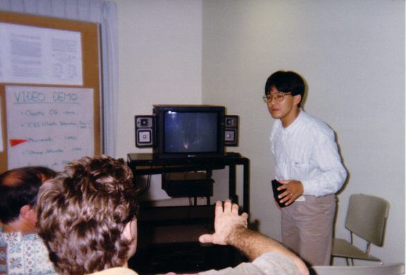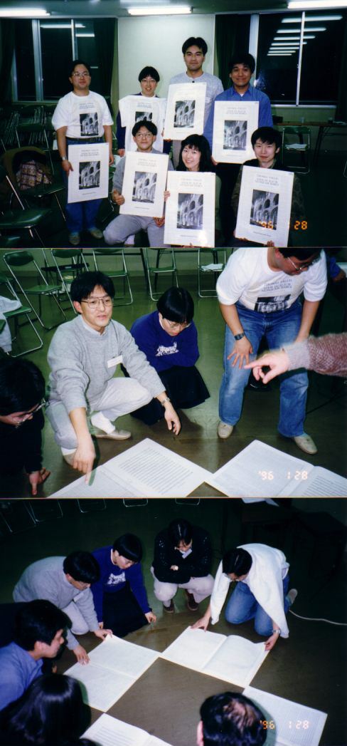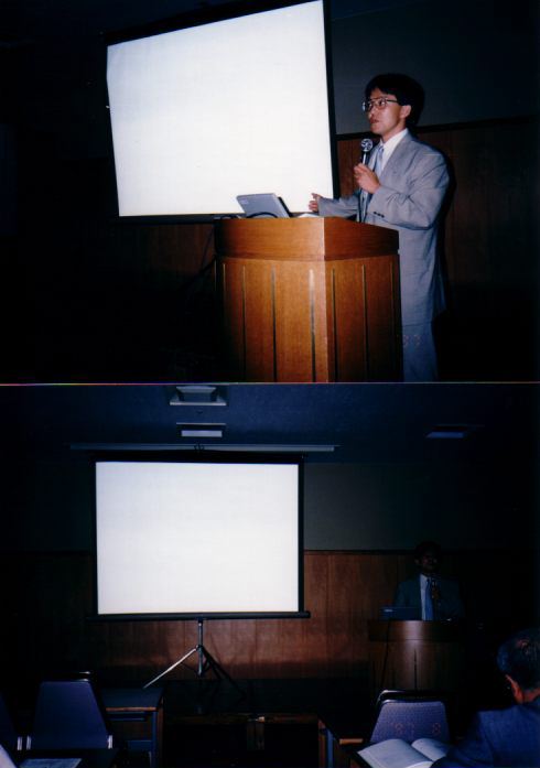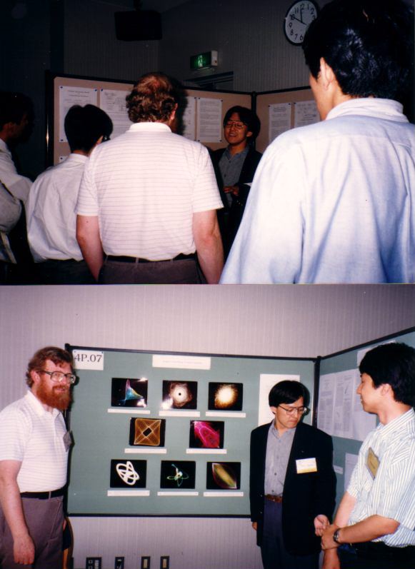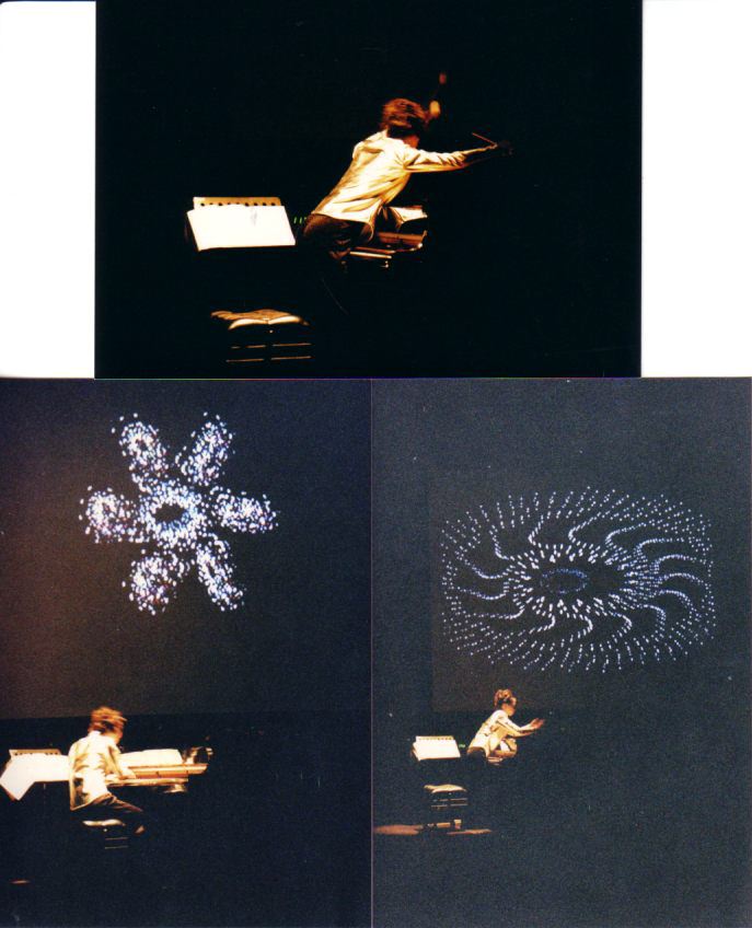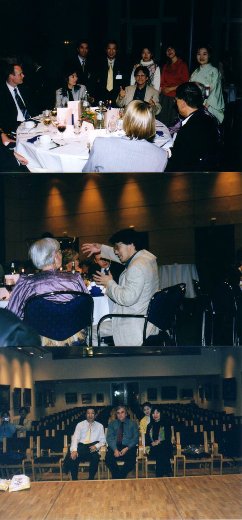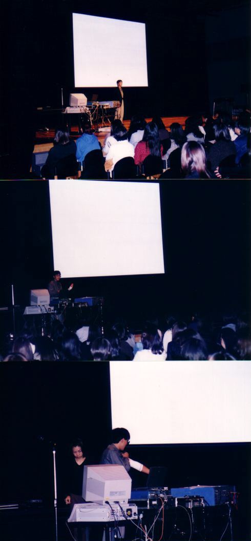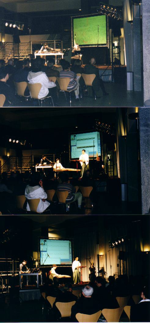 ★ ★ ★ ★ ★ これが今回の写真発掘のキッカケとなった、かつての職場から発掘 された写真です。現代音楽の師匠である中村滋延さんのシステム開発 に協力して、たぶん「音楽之友社ホール」でのコンサートかと 思うのですが、いろいろ準備して公演した模様です。 ★ これはたぶん、サンノゼ大学で開催されたICMC1992の ポスターセッションで発表しているところだと思います。 ★ これはたぶん、早稲田大学国際会議場で開催したICMC1993の ポスターセッションで発表しているところだと思います。 ★ これは、IRCAMで活躍している、お友達の作曲家、後藤英(スグル)さん。 まだ面識がなかった時代に、突然にオリジナルのセンサ(インターフェース)の 開発を依頼してきた時の自己紹介資料に添えられていた写真です。 今見ても、十分にアヤシイです。(^_^;) ★ これは、1999年の ICMC1999北京の時のもので、 イギリスで大学の先生をしている板垣さんが送ってくれたものです。 ★ Niftyに「合唱フォーラム」というのがありまして・・・という話をすると 数時間が必要なので、パス(^_^;)。要するに「うた仲間」の、ぶたこはんとたこぶはん などと一緒の写真です。いちばん下の写真は所謂「合唱オフ」というものですが、 これまた説明すると長くなるので。 ★ これは浜名湖畔にある「鯛湖亭」というところで行った「合唱オフ」の 写真で、この巨大なのはタリスの40声の有名なモテットの楽譜です。 B2サイズの1ページに縦に40段という楽譜で、当然ですが40パートは 全て異なる音で、さらにポリフォニーなのでほとんど全てのところで 歌詞も別々になります。楽譜を音にするのに最低でも40人が必要なの ですが、このオフにはその半分ぐらいしかいませんでした。この楽譜を Tシャツにして着ている人もいますね。 ★ ★ これは何年か前に、小学校の恩師を囲んで、初めての同窓会に水戸まで行った時の写真です。 こんなおじさんおばさんの写真を関係者以外が見ても何にもなりませんが、 要するに年令がほぼプラスマイナス1才ぐらいの同窓生、ということです。 ★ ★ これ数年前、まだ神戸山手女子短大音楽科で教えていて、ジーベックホールが 元気だった頃のものです。山手の公開講演会をジーベックで行った時の模様の ようです。 ★ ★ これも数年前、ジーベックホールでJACOM(日本コンピュータ 音楽協会)のコンサートを行った時のものです。 カオスをComputer Musicに使った作品でピアノに鉄板とか 鎖を投げ込んでいるのは吉田幸代さんです。 ★ これはお仕事モードで講演会をした時の写真を、後日、静岡県中小企業診断士協会が 送ってきたものです。スーツがばっちり似合っていません。(^_^;) ★ ★ ★ これは一昨年の9月に、フランスとドイツに行った 欧州ツアー2001の時のもので、 三弦/箏のお師匠さんである三好晃子さんから、後日届いた写真です。 ★ ★ ★ これは去年の秋に、シカゴ-リノと行った 電力品質(Power Quality) 視察ツアー2002の時のもので、お呼ばれの ビジネスシートのフライトチケット、リノのカジノホテルの リッチなルームカード、そしてカジノ内で記念撮影するために うろうろしているお姉さんと一緒のポラロイド写真です。(^_^;) ★ これもつい去年の写真です。説明しても判らないので省略ですが、 東京での「サイコロ野球選手権大会」に出場した時のもので、 一緒に写っているのは、中学から高校の同級生です。 ★ これは落ち穂拾い的なバラバラです。いちばん上はSUACで開催した メディアアートフェスティバル2001で、僕の作品を演奏してくれた 三好晃子さんなど。真ん中のブリクラは、ICAD2002という国際会議 の会場となったATRツアーに参加して、VRシステムのデモで撮って もらったもの。いちばん下は、神戸山手女子短期大学音楽科の卒業生 が、山手を去る僕とふーみんを送別してくれた場、かな。 ・・・いやー、懐かしいなぁ。(*^_^*)