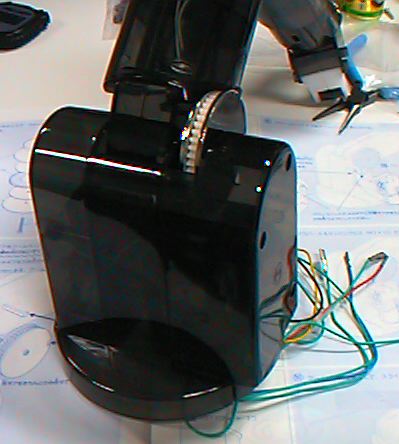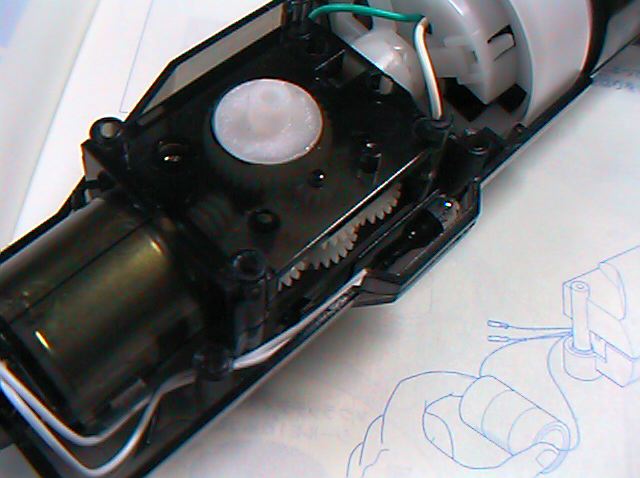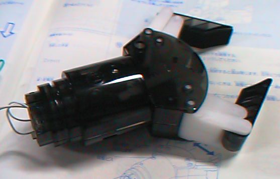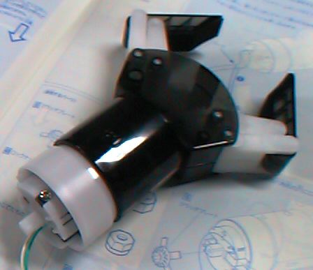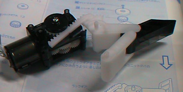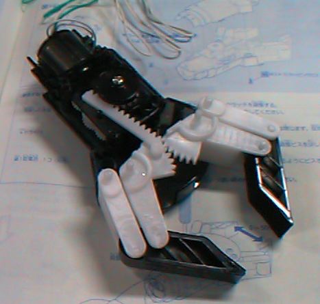 爪を開閉させる最初のパワーユニット。既に、モーターとギアボックス、