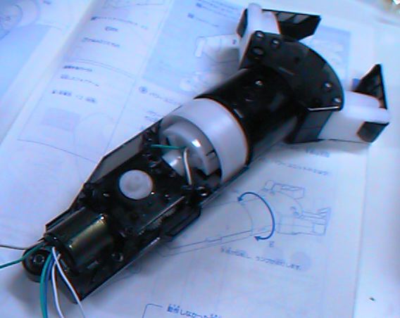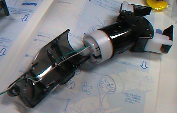 手前の白い筒は、手首の回転のためのものです。こうやって、次第に
