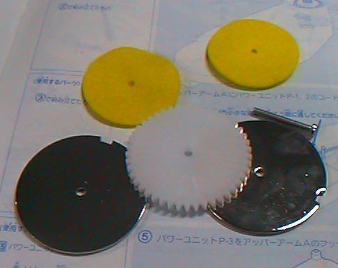 これは、「肩」関節の上下の部分のギアです。この先の関節にあった
