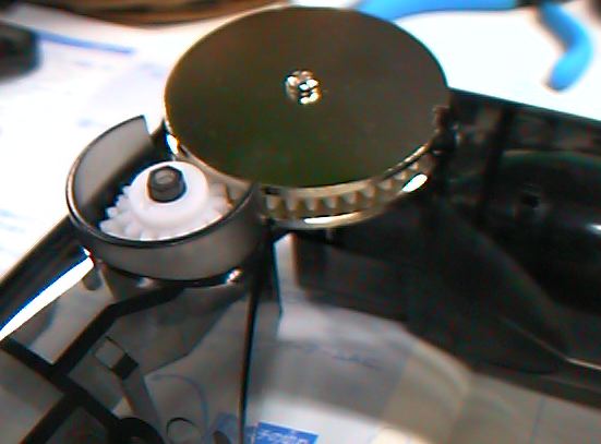 ここから、最後に残った台座です。この白いギアは、過回転の時に滑る機構