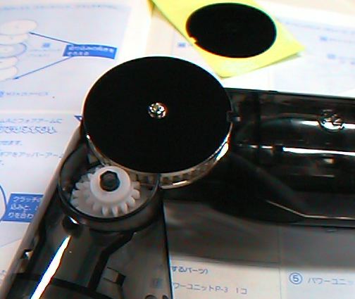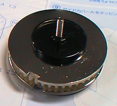 そして、このギアカバーで押さえます。ツルツルのシールによって