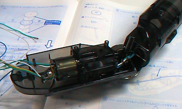 パワーユニットのカバーを取り付けて、アームの先端部分が