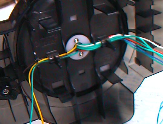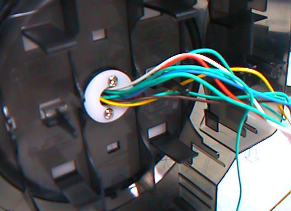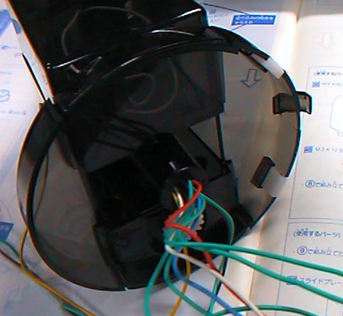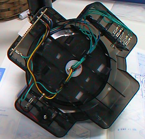 裏返して、台座の中央の筒から全ての配線を引き出します。