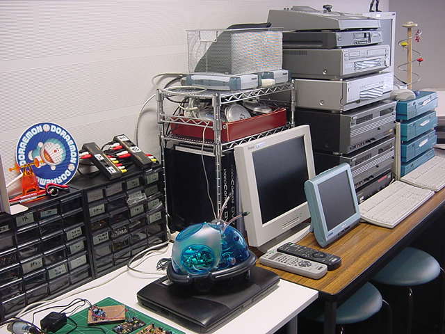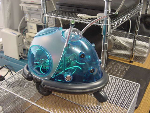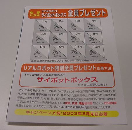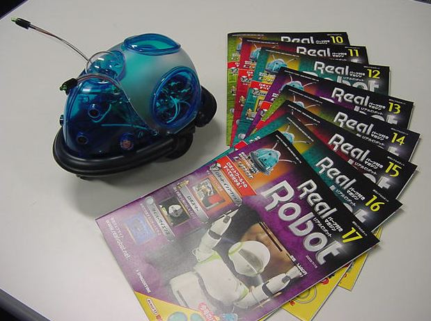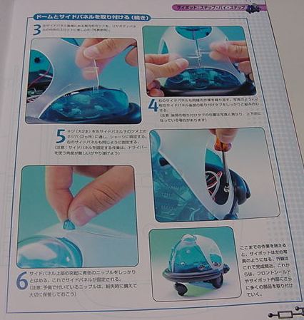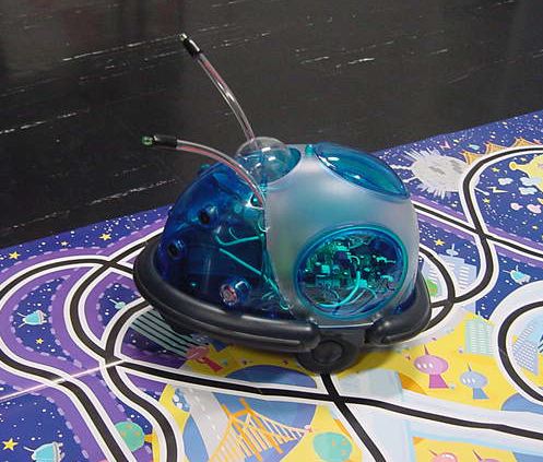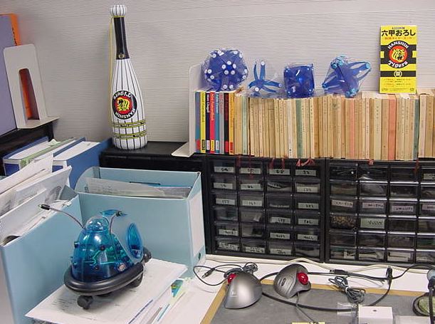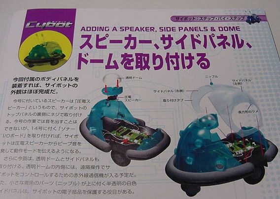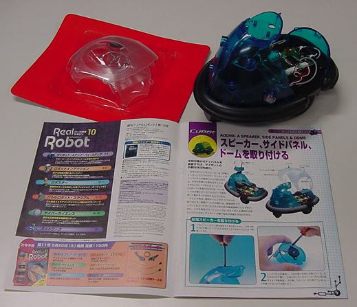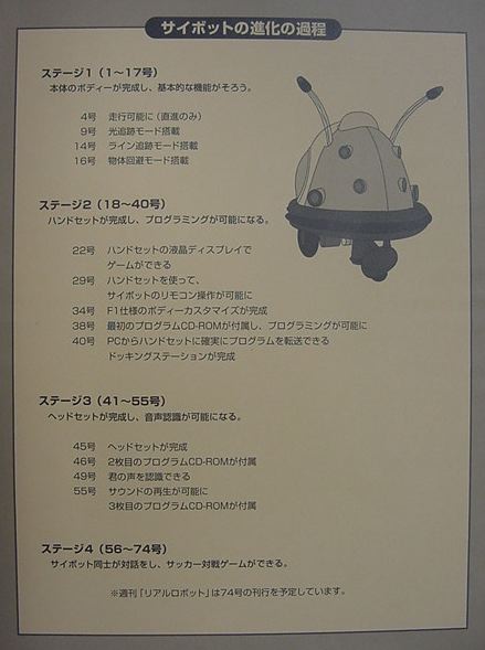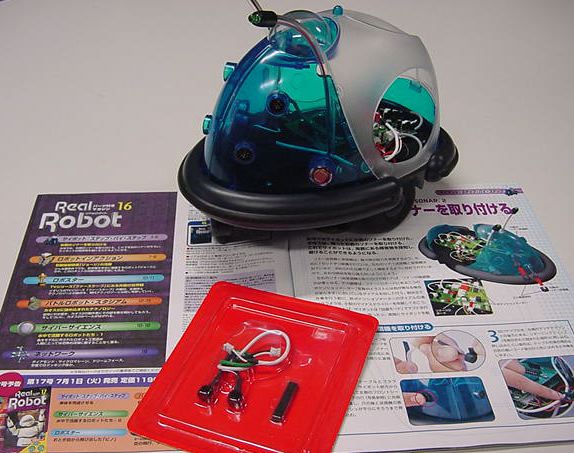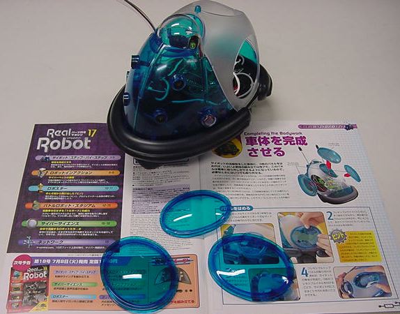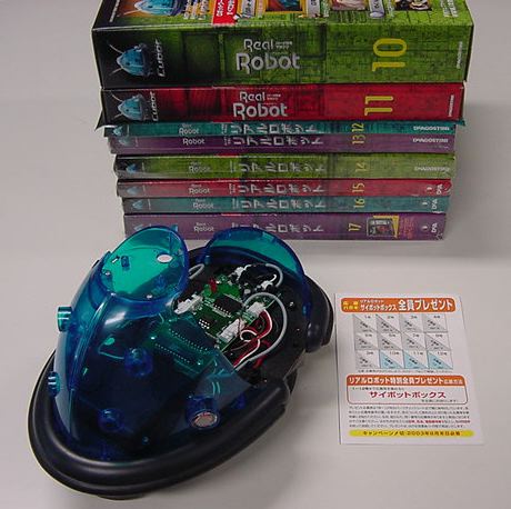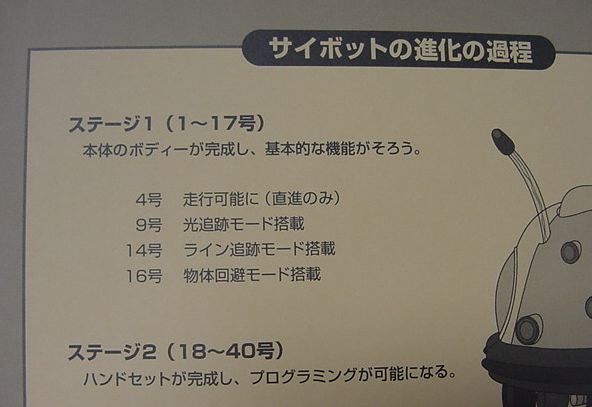 ★ ★ ★ ★ ★ ★ ★ ★ ★ ★ ★ ★ ★ いよいよ、今回の制作の最後、第17号の分です。 3つの柔らかいビニールの「窓」を付けただけでした。 付録で付いてきたマップの上も、ちゃんと走ってくれました。 とりあえずここまで完成したサイボットを、ちょっと改装した1106研究室の 風景をバックにいろいろと撮ってみました。サマになります。(^_^)