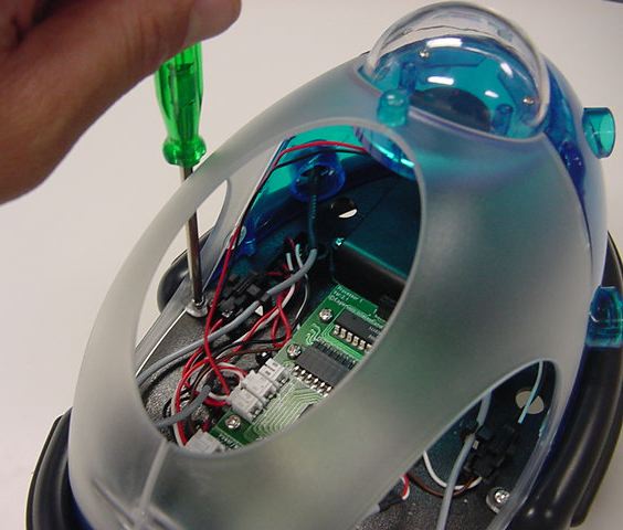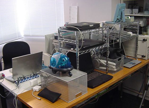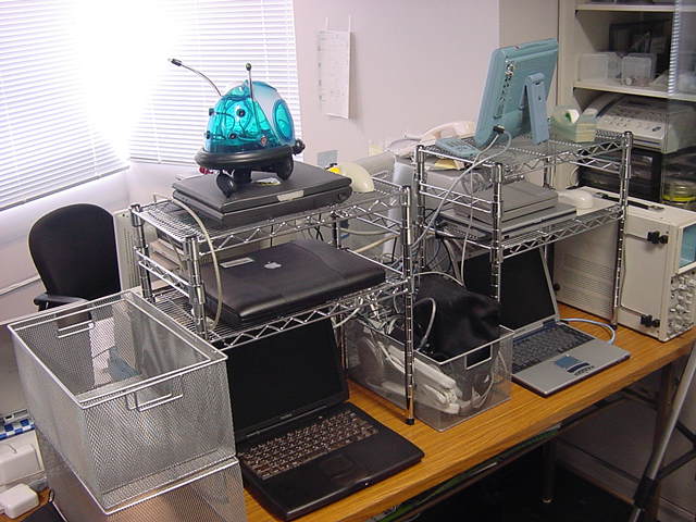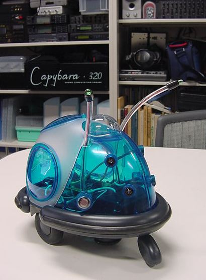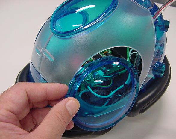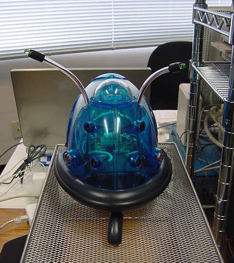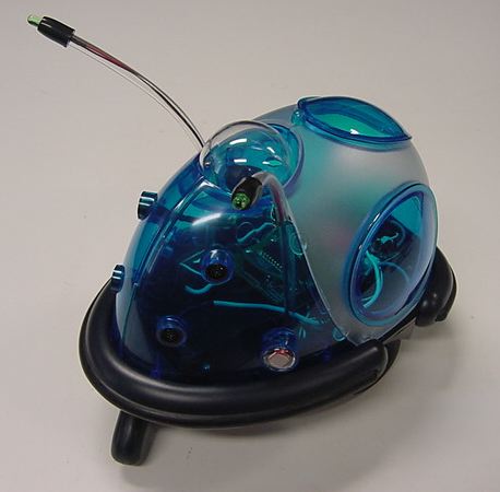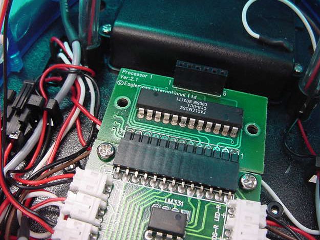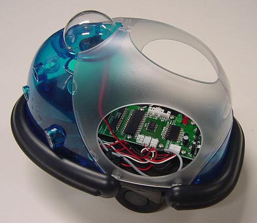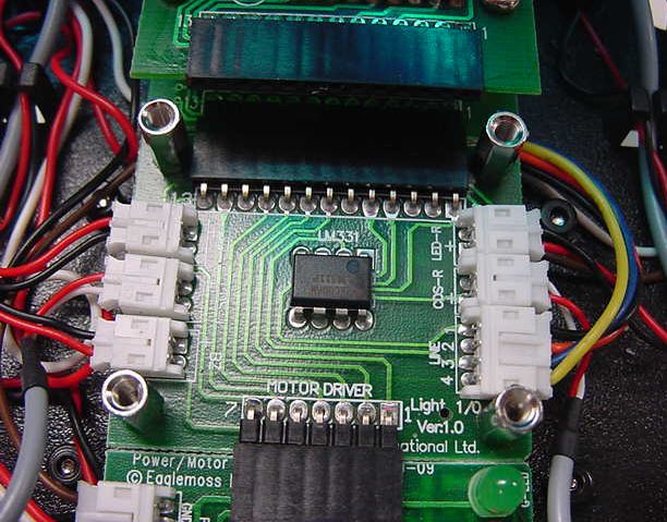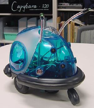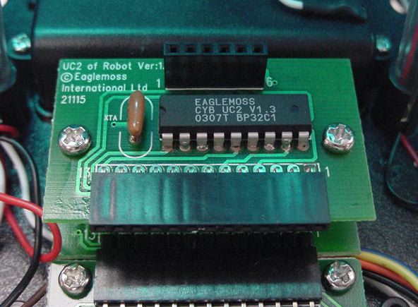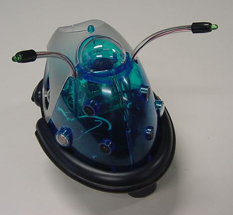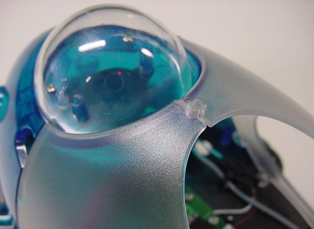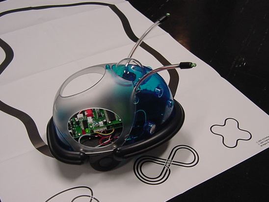 ★ ★ ★ ★ ★ ★ ★ ★ ★ ★ ★ ★ ★ いよいよ、今回の制作の最後、第17号の分です。 3つの柔らかいビニールの「窓」を付けただけでした。 付録で付いてきたマップの上も、ちゃんと走ってくれました。 とりあえずここまで完成したサイボットを、ちょっと改装した1106研究室の 風景をバックにいろいろと撮ってみました。サマになります。(^_^)
