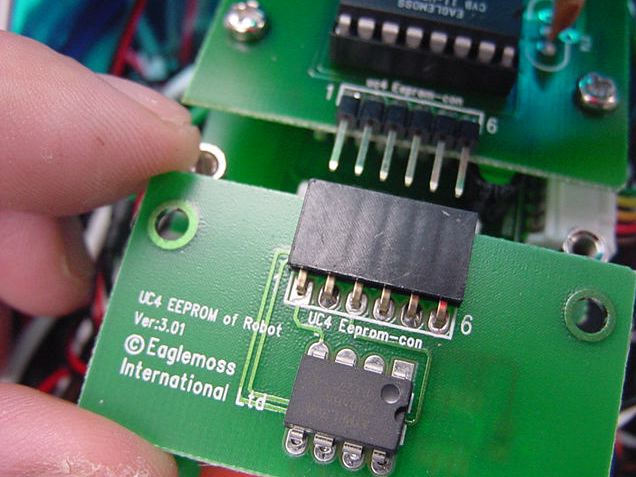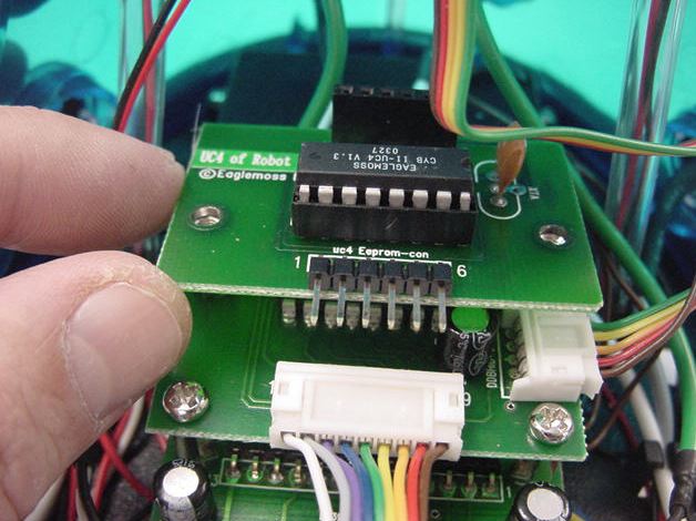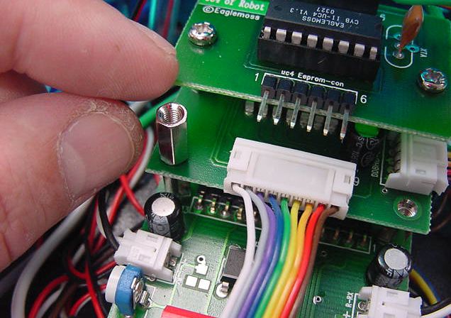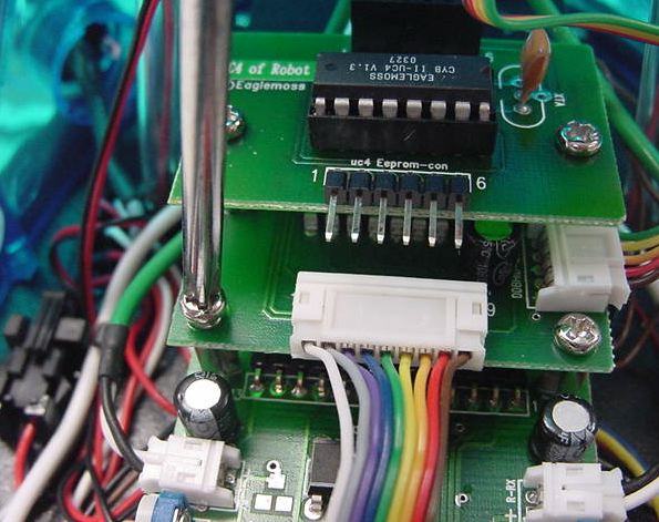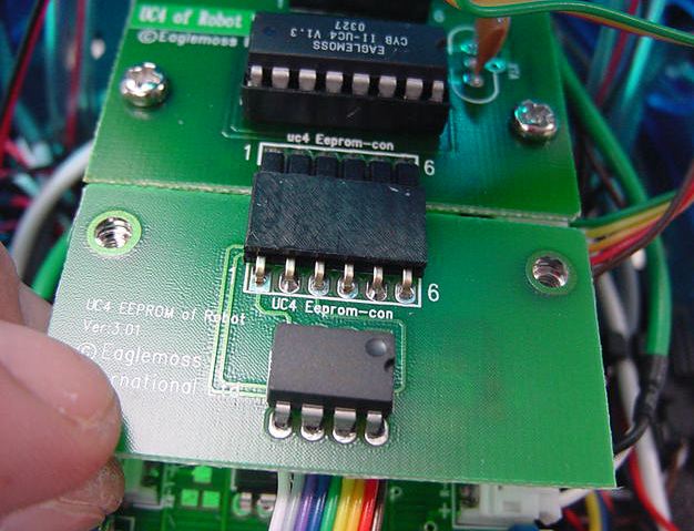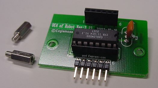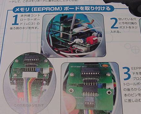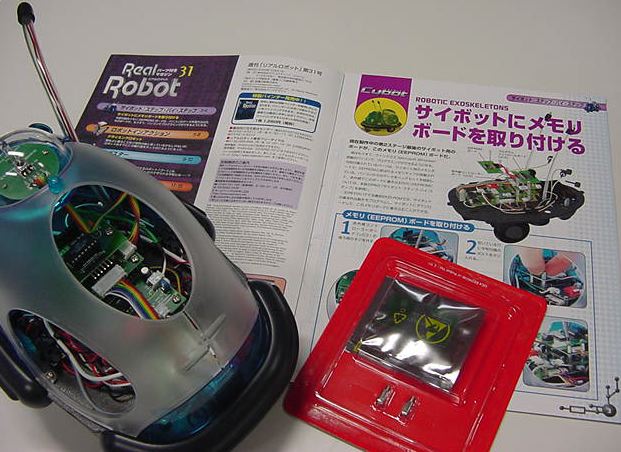 ★ ★ ★ ★ ★ ★ ★ ★ さて、まずは第30号の分からです。 ここからしばらくは、ホストパソコンでサイボットの動きをプログラム する、というお楽しみの段階の準備です。 スタンドアロンだったCPUのプログラムROMがフラッシュEEPROMに なる、というところでしょうか。今回はそのインターフェースだけです。