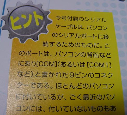 ★ ★ ★ ★ ★ ★ ★ ★ ★ ★ ★ ★ ★ ★ 次は第32号の分です。 ハンドセットにRS232Cのコネクタが付いて、いよいよパソコンと接続する ケーブルの登場です。しかし今どき、PC/ATタイプの9ピンのノーマルサイズ のDSUBコネクタでRS232Cなんて付いているパソコンは化石ですから(^_^;)、 これで多数のUSB-RS232Cアダプタが売れたのでしょうか。