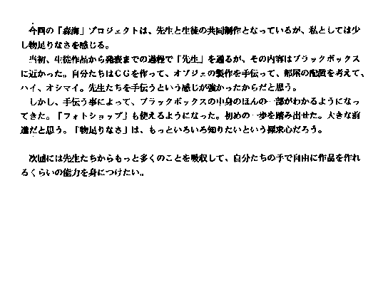 ョンで、時間もないこともあり、骨子を作ったのはあくまで先生で、私たち生徒