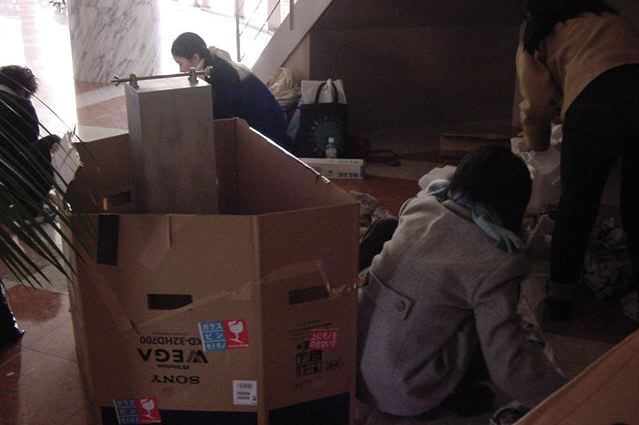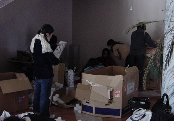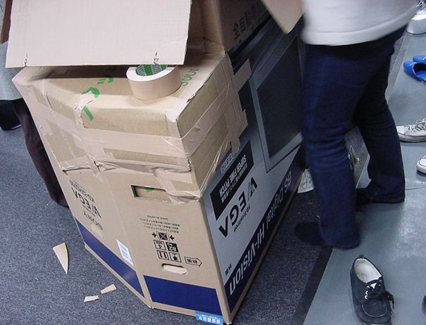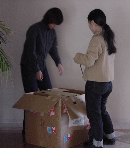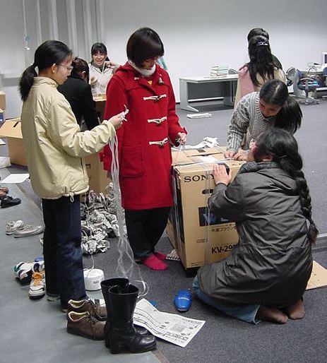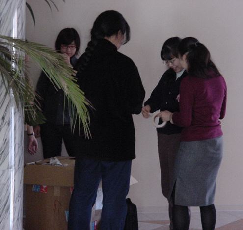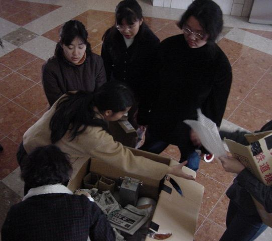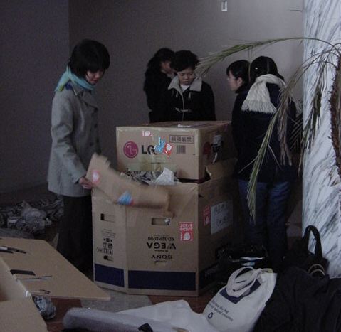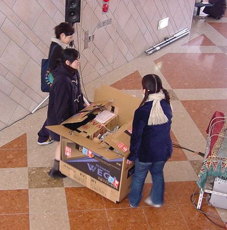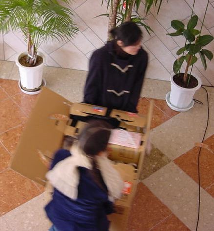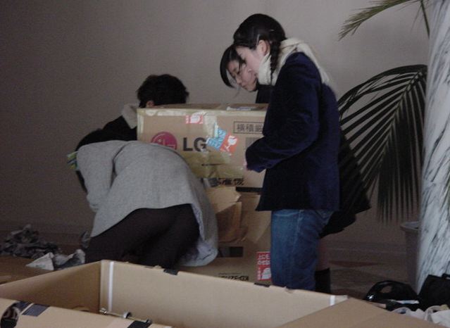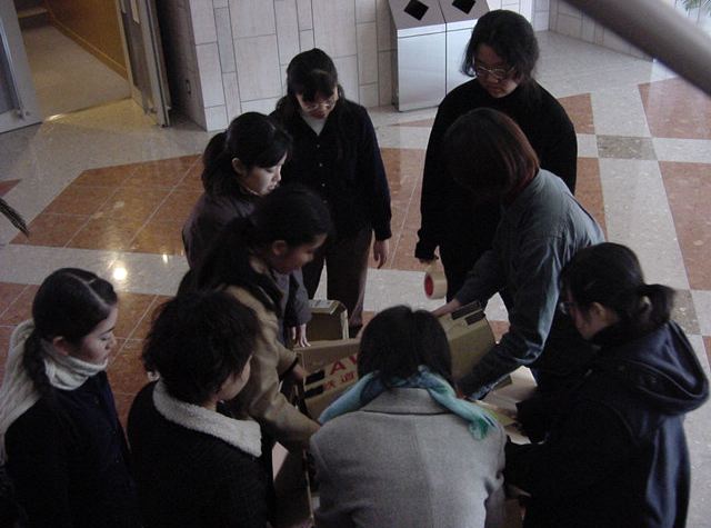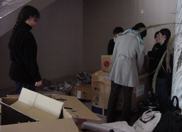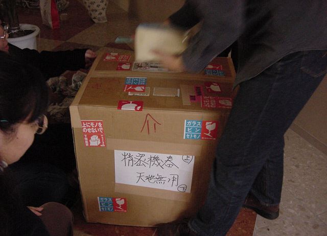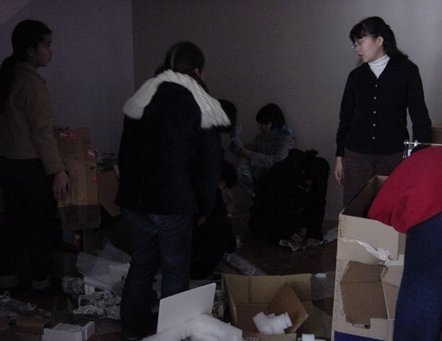 まずは、公演のためのインスタ等の機材をCAM室で梱包です。 前日に皆んなで集めてきた段ボールに美しく(^_^;)梱包しました。