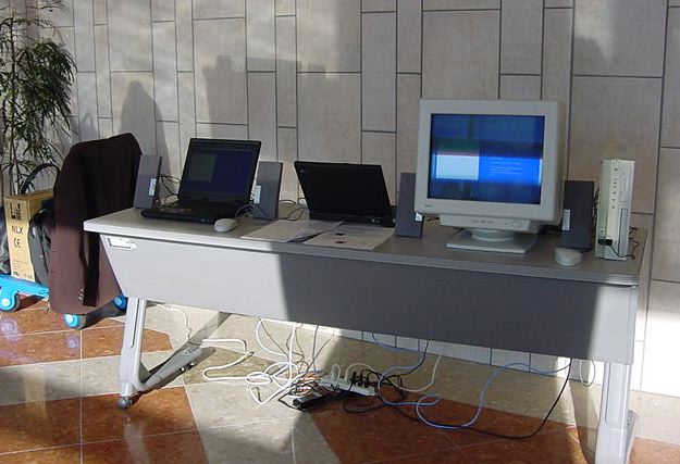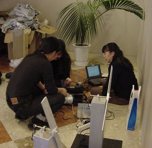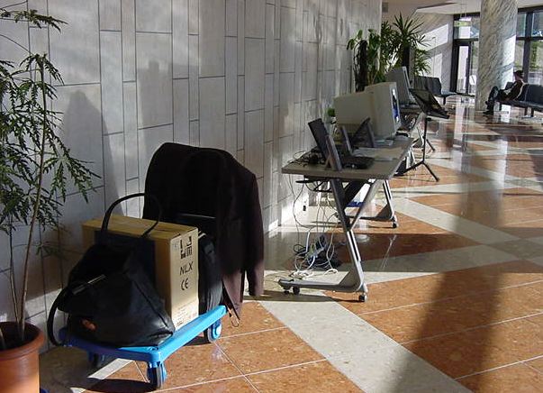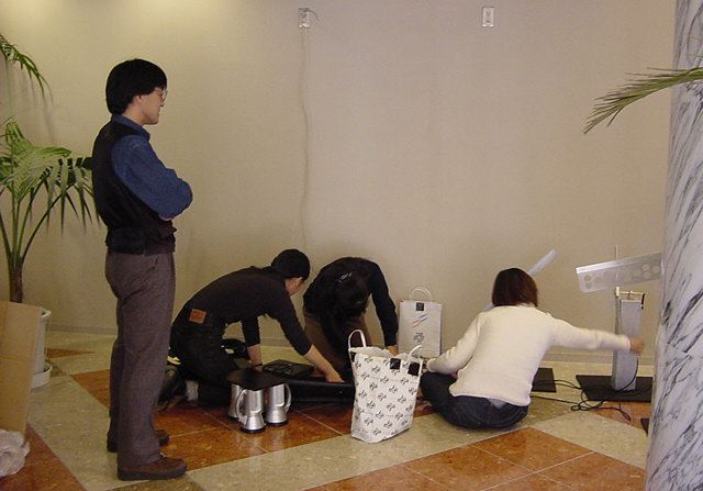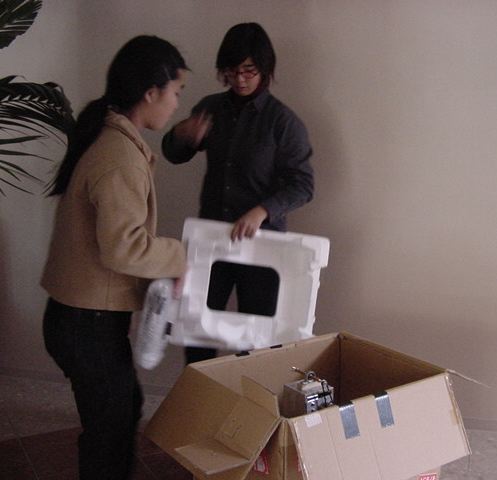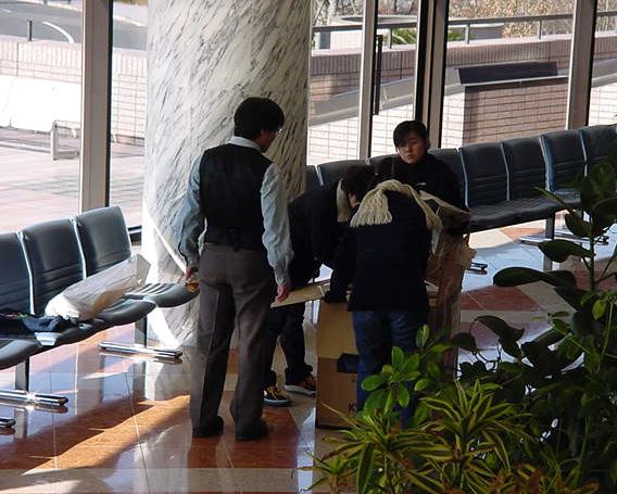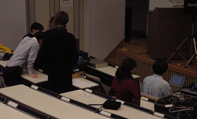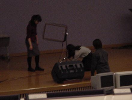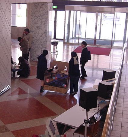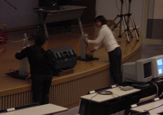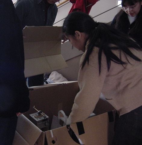 東名高速バスで東京に、さらに中央線で八王子に、さらに横浜線で 八王子みなみ野に、そしてスクールバスで東京工科大学に着きました。 さっそく荷物を開けて、今度はインスタの組み立てとチェックです。 ロビーには、各大学のインスタも展示されています。