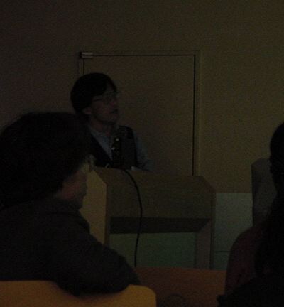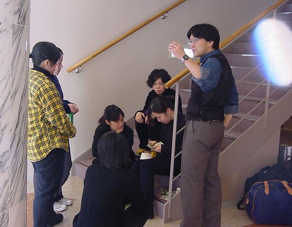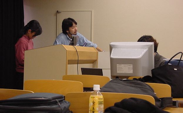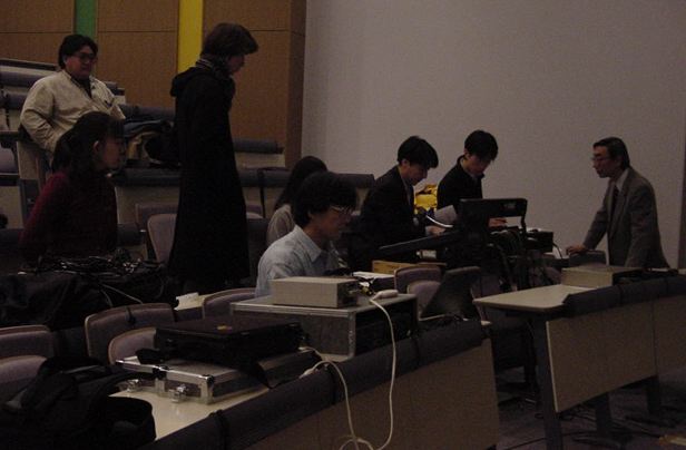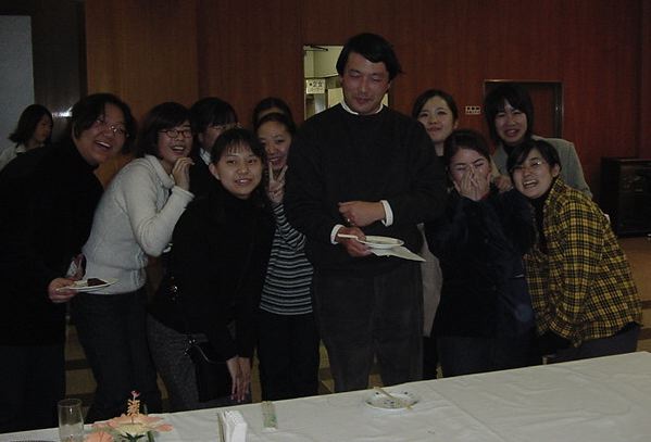 そしてこの後、懇親会です。とてもお世話になった、東京工科大の 高岡先生を囲みました。皆んな、名刺を配って交流したでしょうか。