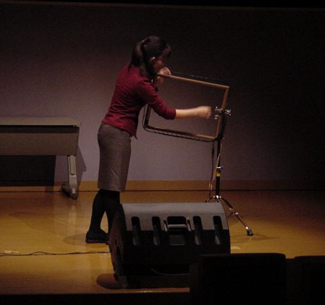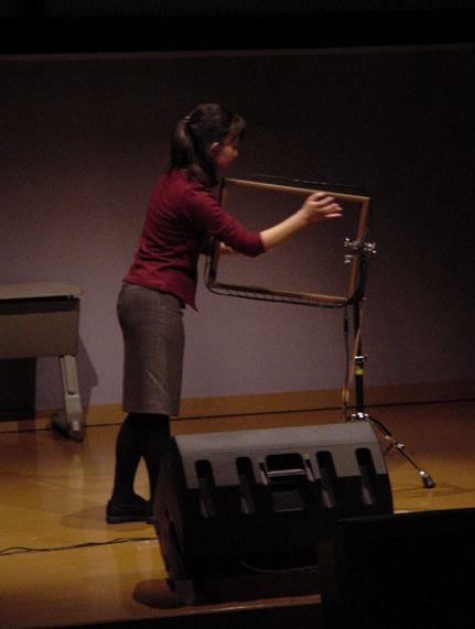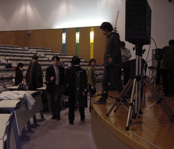 さて、そして2日目の朝。皆んなちゃんと9時に集合して、 再び東京工科大に行きました。まずは荷物の返送のための 梱包、そしてまたインスタを見て、リハーサルを見ます。 この日は神戸山手の音楽専攻科の大坪さんが、「光の弦」を 演奏して自作を発表します。(^_^)