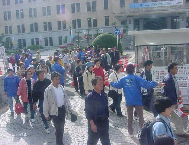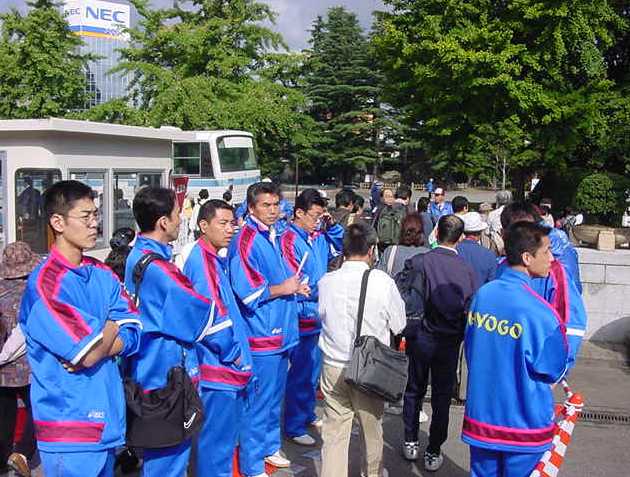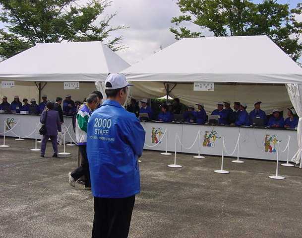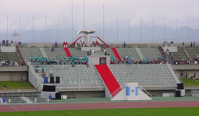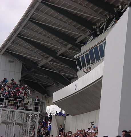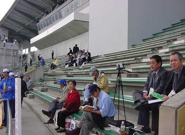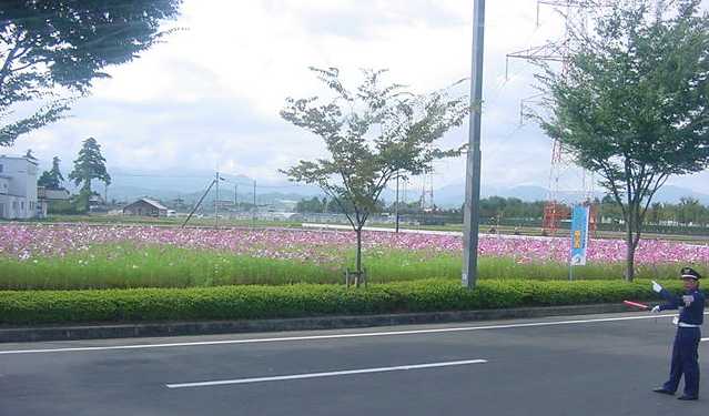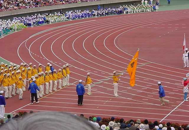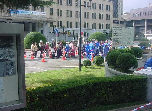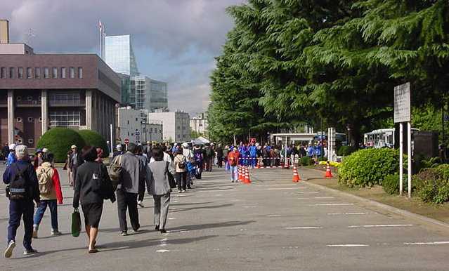 JR富山駅に着き、シャトルバスで会場に向かい、開会式会場の 総合運動場に着くまでの模様です。前回も皇室(秋篠宮夫妻)や 知事などVIPが来るということもあり、警備はかなりのもの だったのですが、今回は天皇皇后両陛下という特上VIPのため、 警備はさらに凄いものでした。沿道には、天皇皇后を一目 見よう、という住民が並んでいました。実際に通過するのは、 この時点からまだ2時間以上あとなのに。(^_^;)