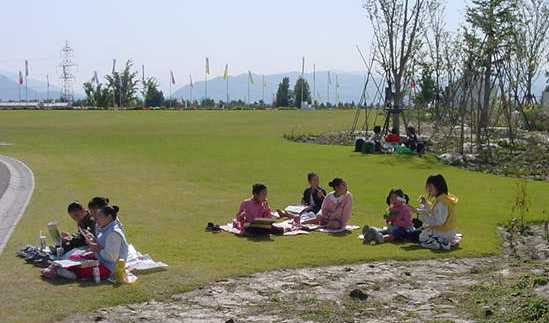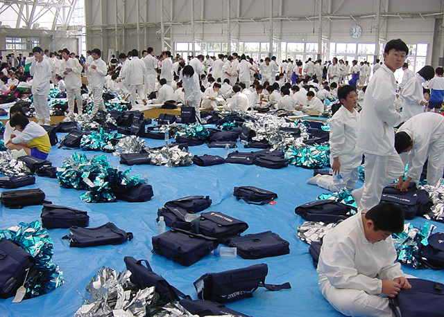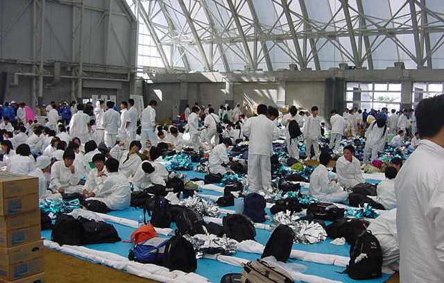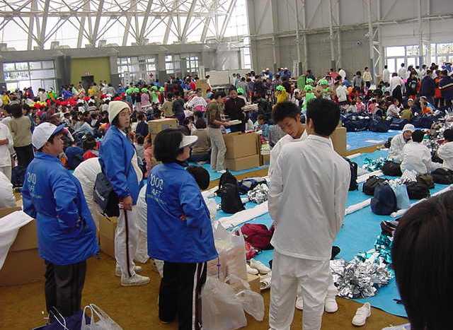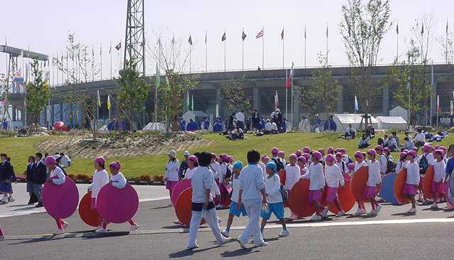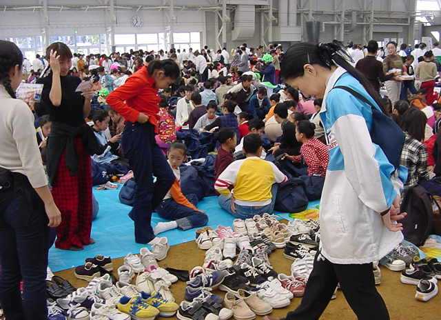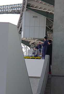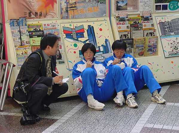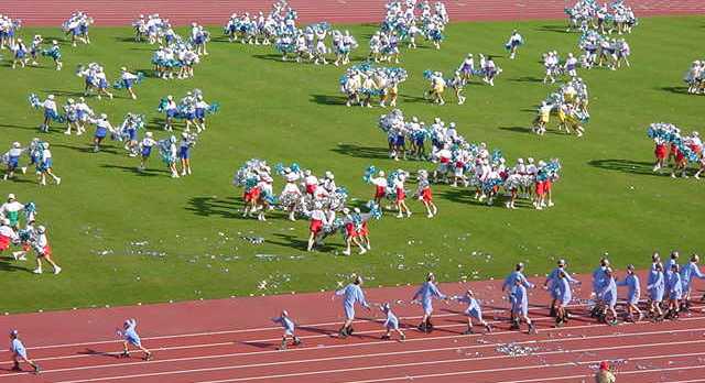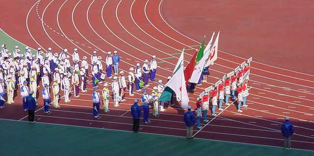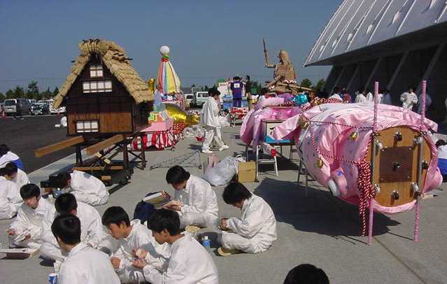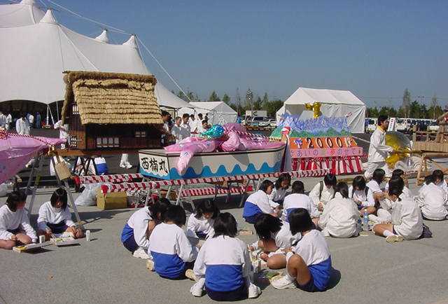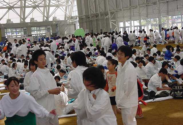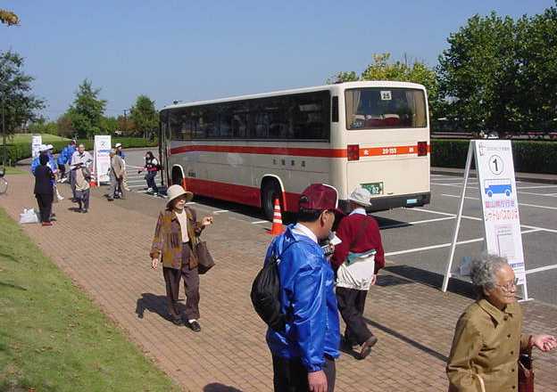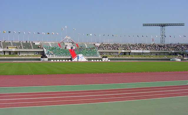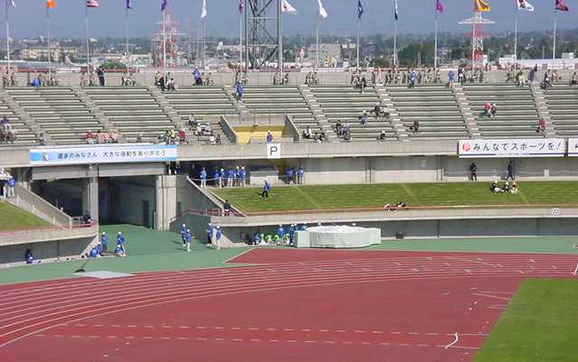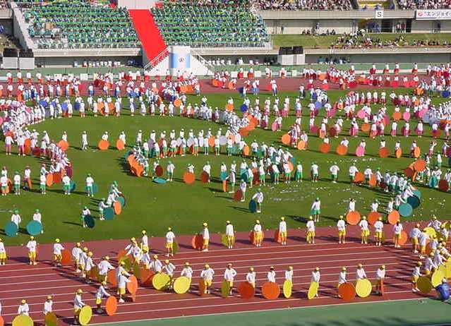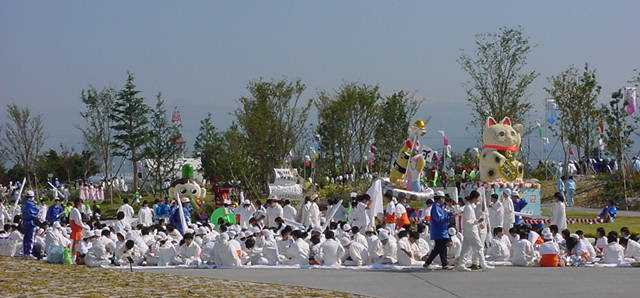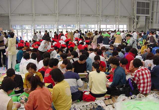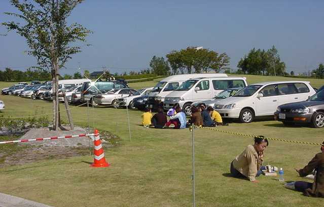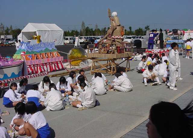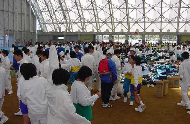 ここからは、スタジアムに入るまで、会場でうろうろして撮った ものです。開会式の時にはとても寒く、えらく待たされて、さらに 緊張もあってか、子供たちや学生はあまり楽しそうな顔をしている ように見えなかったのですが、ここで反省しました。 今回は天気もよく、もう国体が成功裏に終わる、という雰囲気も あり、どこもかしこも和気あいあいと楽しげでした。(^_^)