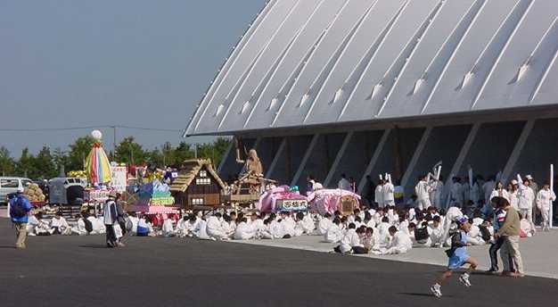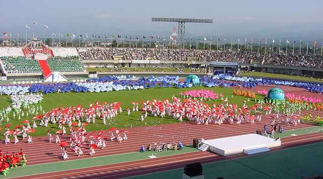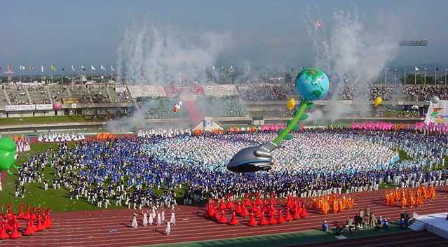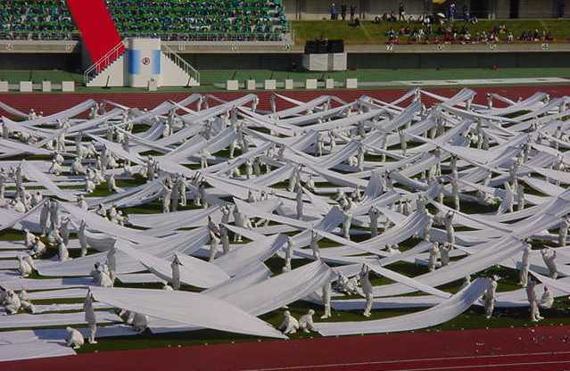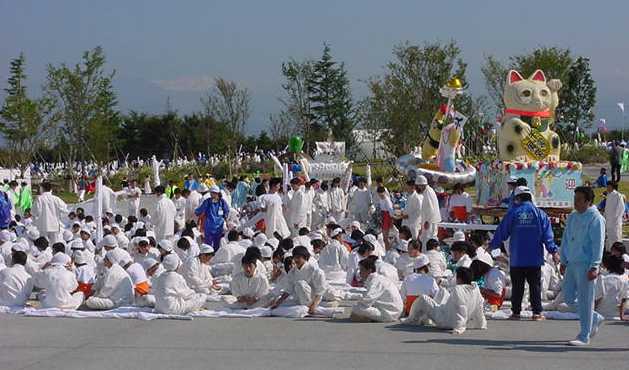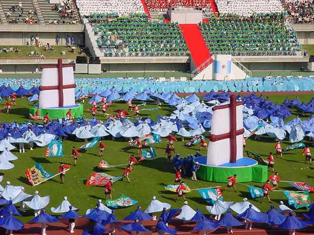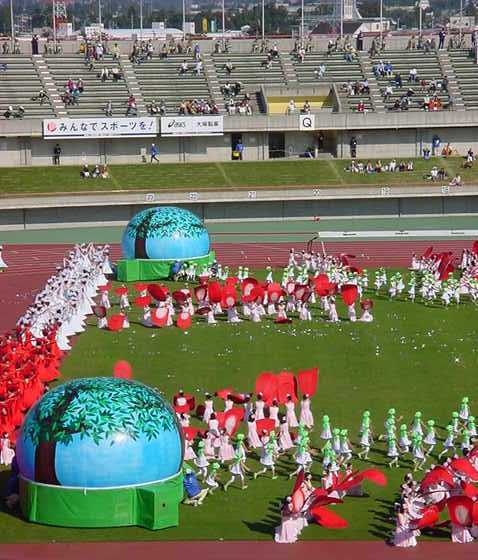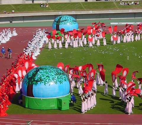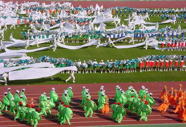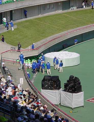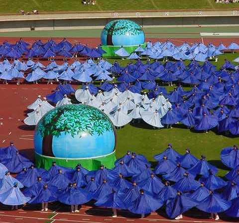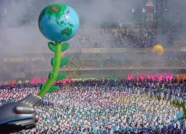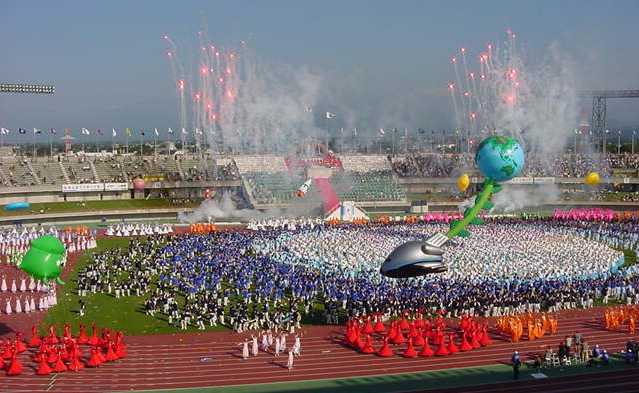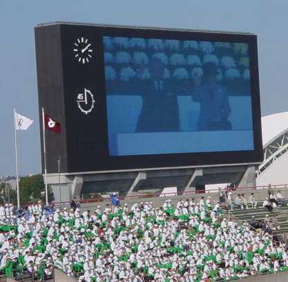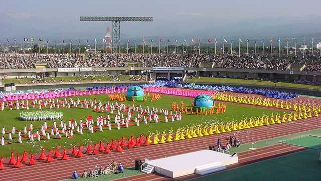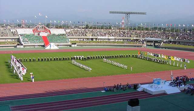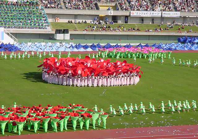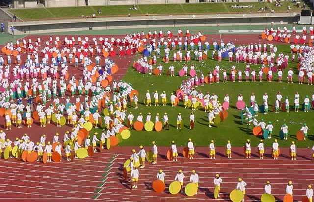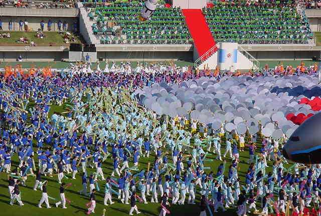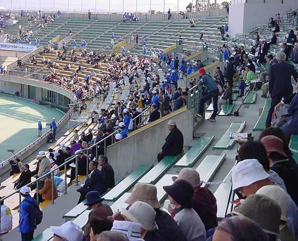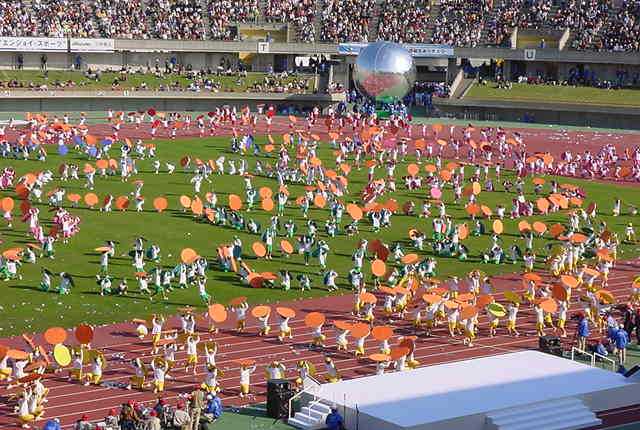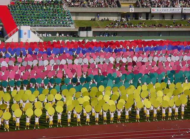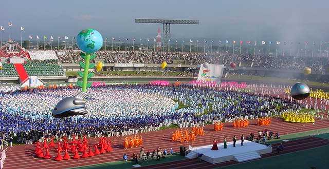 そしていよいよ、閉会式です。今回の皇族は高松宮?夫妻 でした(間違っているかも(^_^;))。 開会式の最後の「式典後演技」をまず最初に式典前演技と して、そのまんま同じにやりましたが、今回はよりイキイキと 感動的でした。そして式典。駅に預けた荷物にスペアバッテリ を忘れたので、300枚あたりでうち止めとなりましたが、 まぁだいたいこんなもんです。(^_^;)