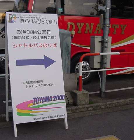 富山駅からシャトルバスで会場に向かい、開会式会場の 総合運動場に着くまでの模様です。