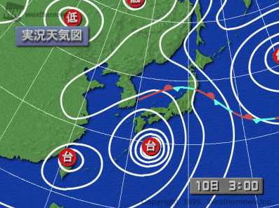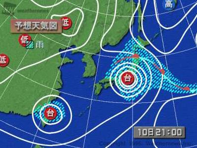 ということで、暴風警報が出たので午後は休講となりました。そして、これからの天気が