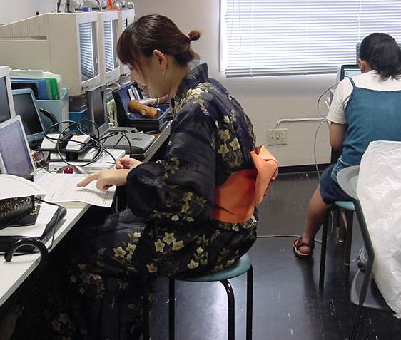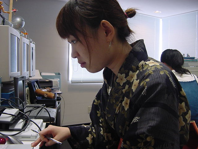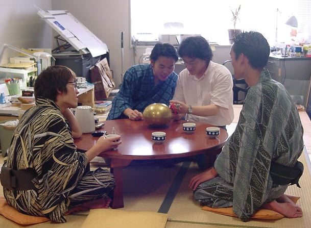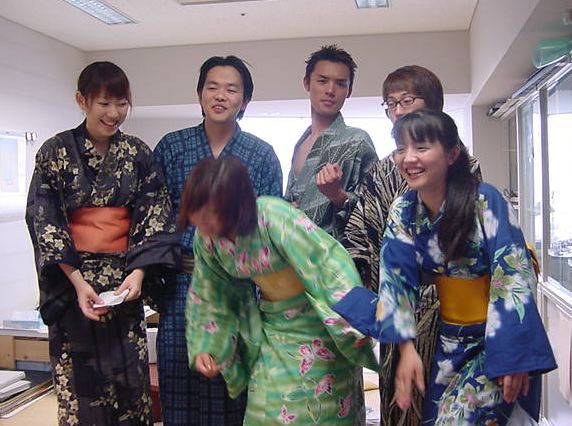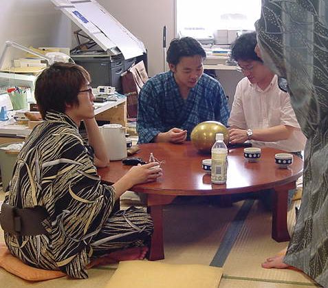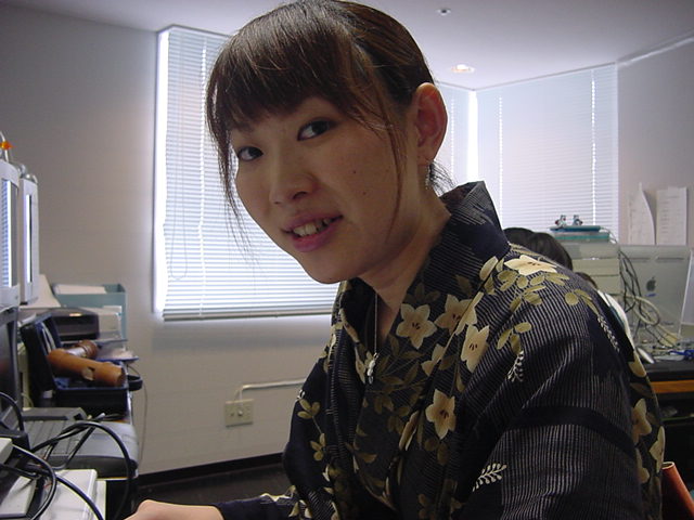 となるぞ、という騒然とした中で、この日はSUACの「浴衣の日」ということで、 以下のように浴衣姿の学生で華やかでした。(^_^) 畳敷きに卓袱台、という粋な部屋はお隣の佐藤先生の1105研究室、そして 撮影は小島瞳さんです。