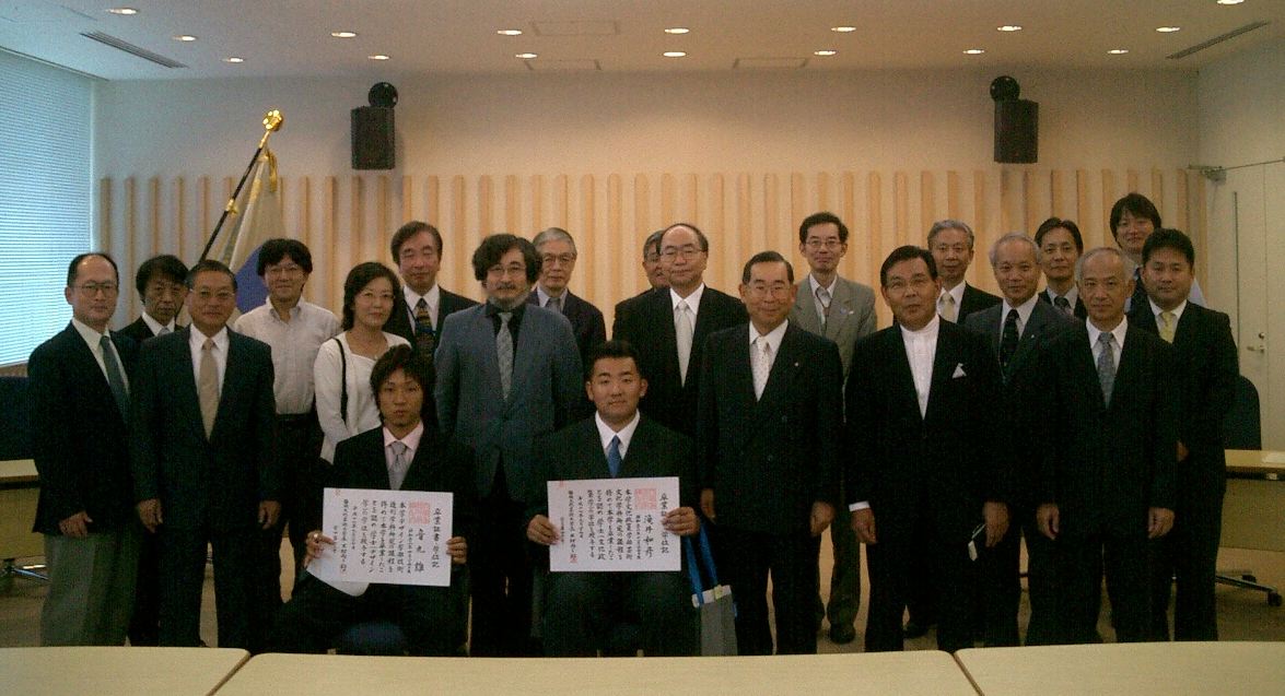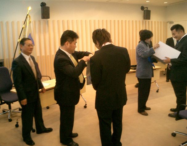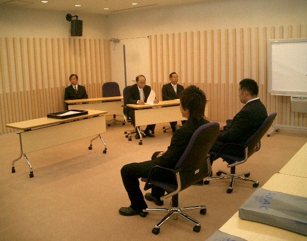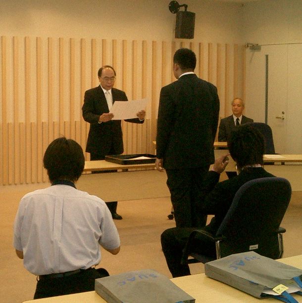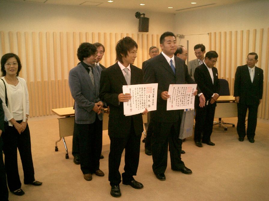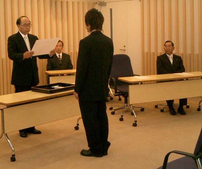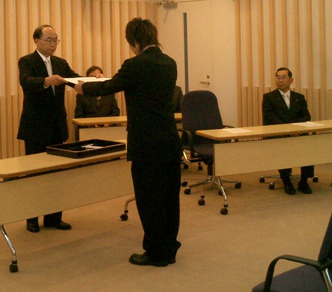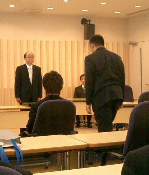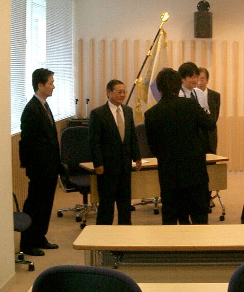 Googleのトップがこんなふうに ハシャいでいた2005年9月27日、 去年に続いて、 普段、学生が入ることもないデザイン学部教授会用の会議室で、 個々の事情(^_^;)で半年遅れた卒業式が挙行され、2005年9月27日、 両学部から1人ずつが卒業していきました。