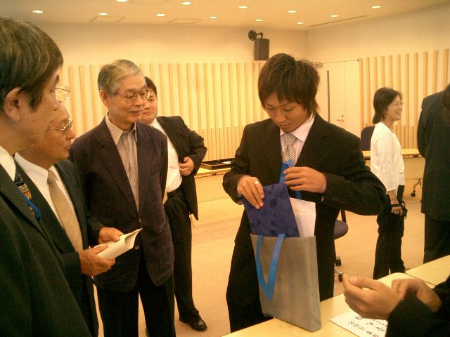 半年遅いSUAC卒業式2005 2005年9月 長嶋洋一 Googleのトップがこんなふうに ハシャいでいた2005年9月27日、 去年に続いて、 普段、学生が入ることもないデザイン学部教授会用の会議室で、 個々の事情(^_^;)で半年遅れた卒業式が挙行され、2005年9月27日、 両学部から1人ずつが卒業していきました。