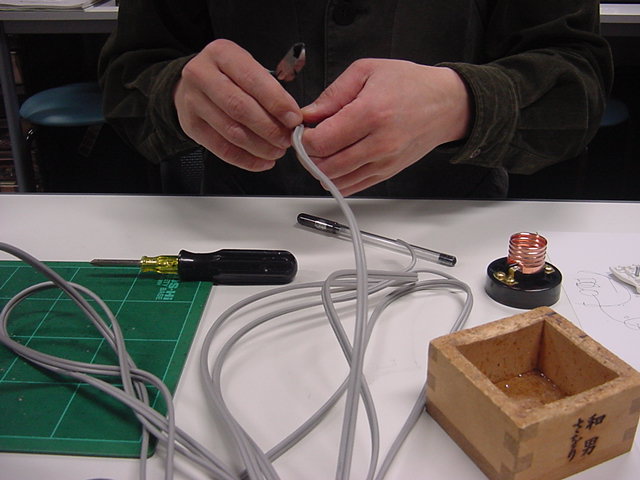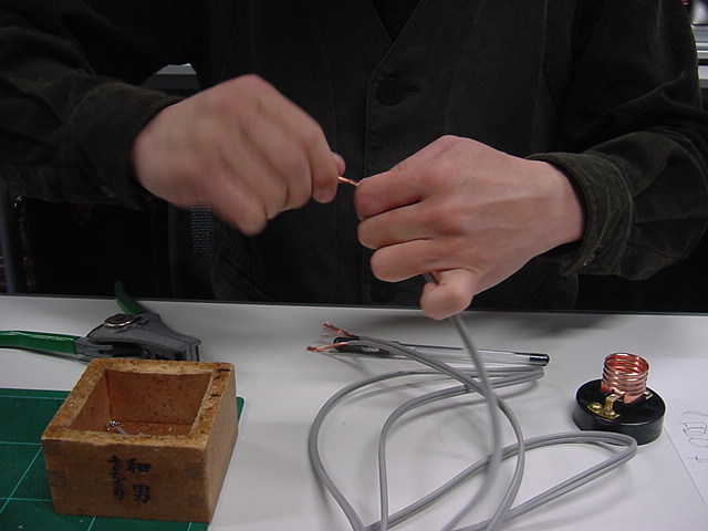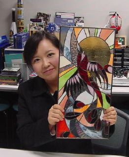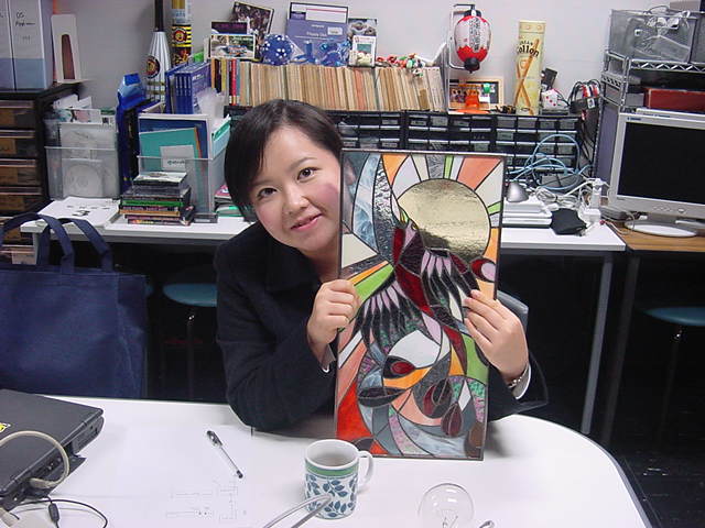 技術造形学科1期生で大学院2年の川崎真澄さんが、 修了制作の最後の味付けのために1106研究室に来ました。 川崎さんの作品は、中日新聞にも と載った、ステンドグラスです。 過去にも何度も「虎」を経験した川崎さんは、 今回の修了制作作品の光源に、Max/MSPでライブ制御を加えたい、 とやってきました。以下はその作業風景です。 あとは卒展と同時に開催される修了制作展をお楽しみに。(^_^)