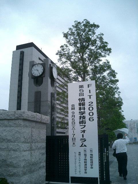 例年、FITはアルスエレクトロニカと重なるので、ここ2年ほど御無沙汰していましたが、 今年はアルスに行かなかったので、久しぶりにFITに聴講参加しました。 FIT2006の開催地が博多の福岡大学である、というのは重要な要素です。 調べてみると、新幹線よりもセントレアからのANA(超割)の方が、早くて安かったので、 7月の函館に続いてのフライトとなりました。いつものe-wingで