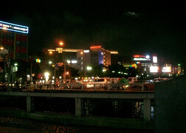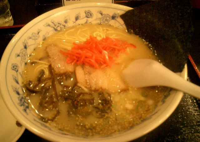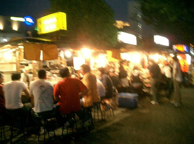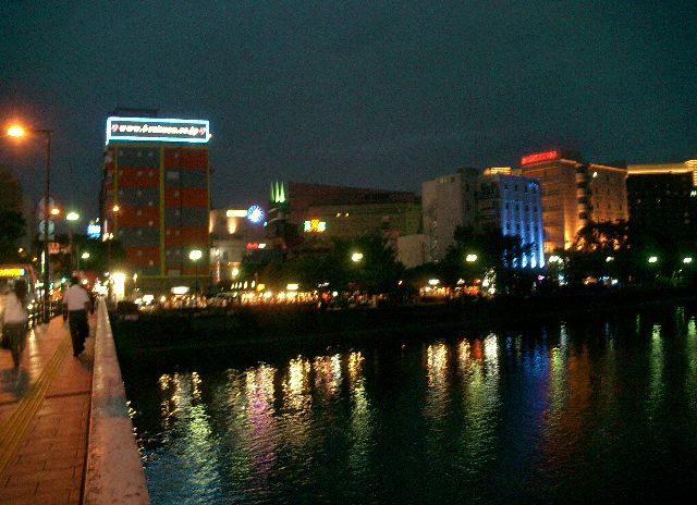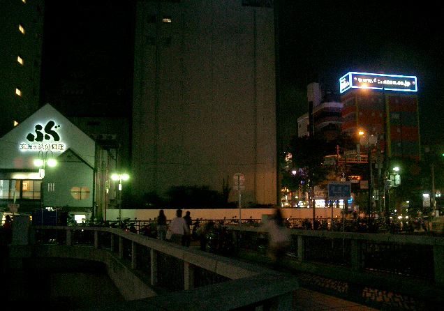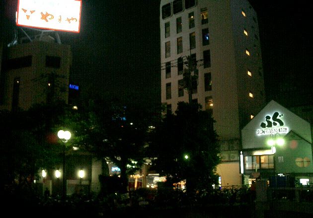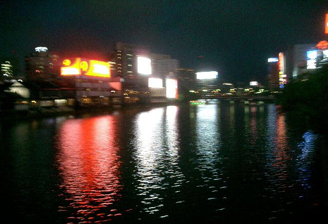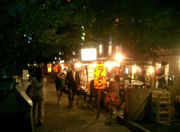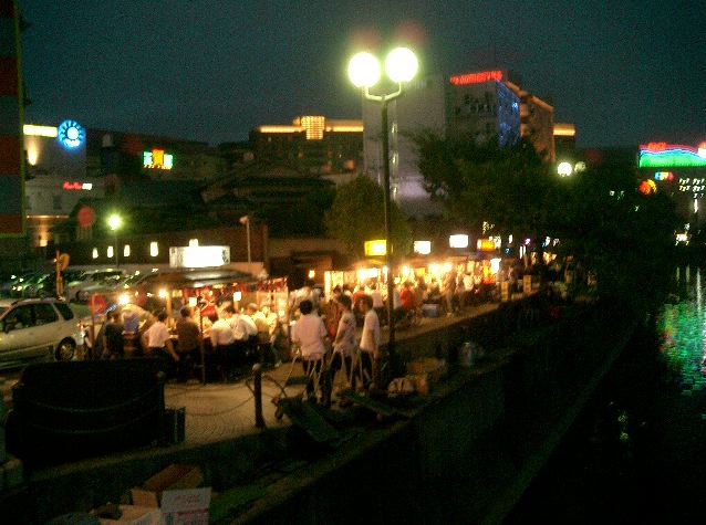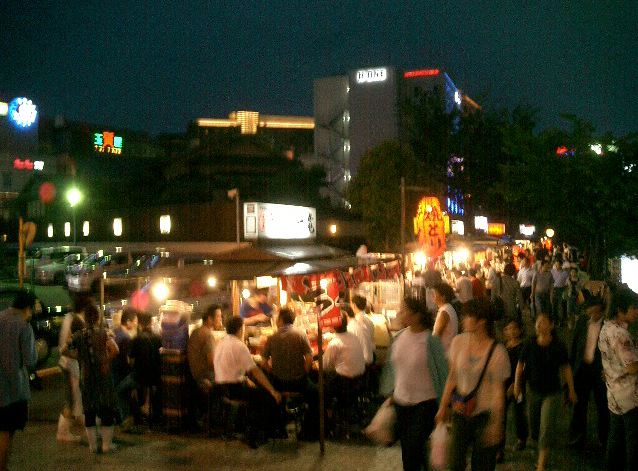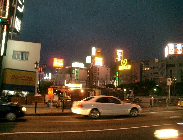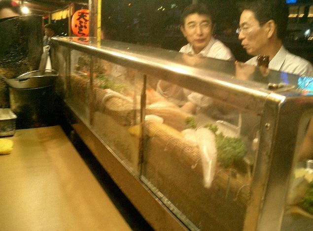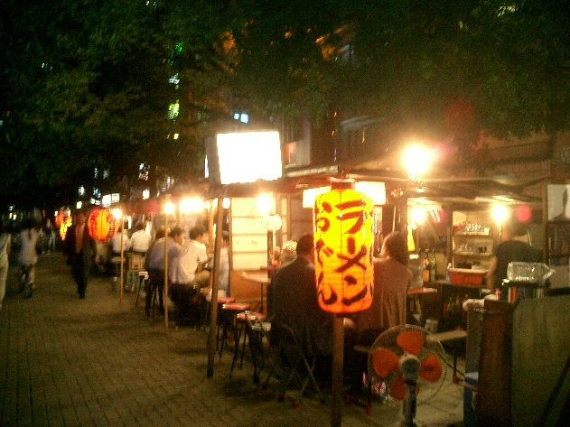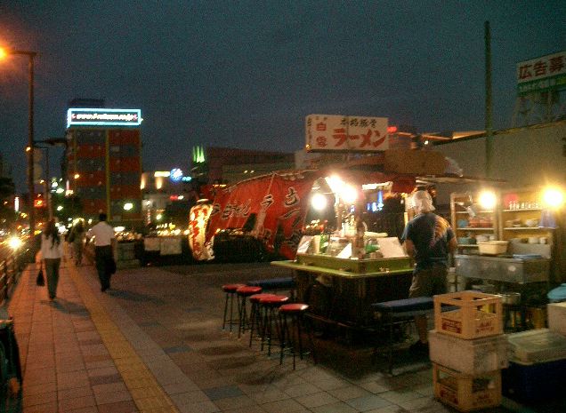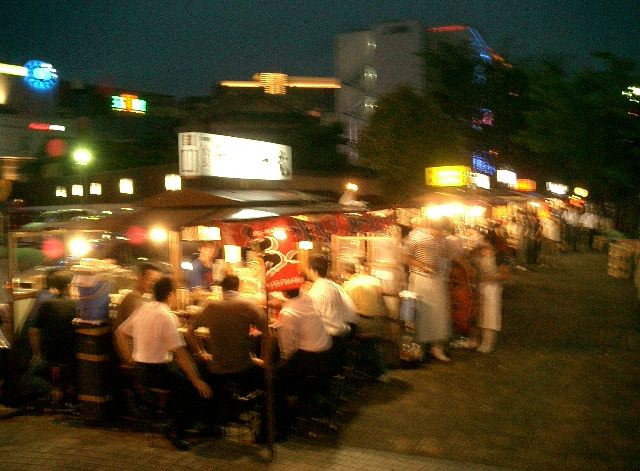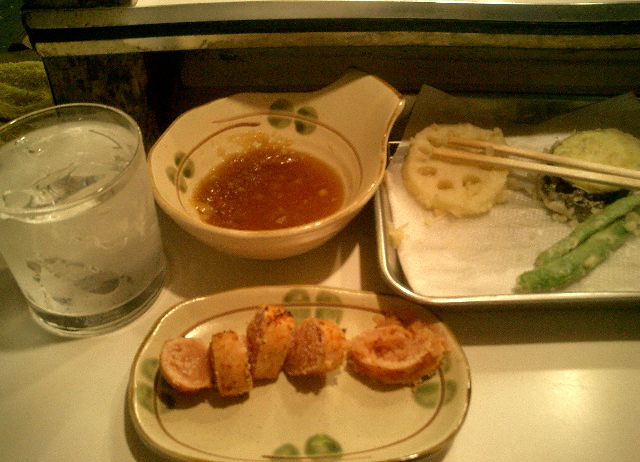 天婦羅の屋台で明太子と焼酎を堪能。ネタは超新鮮で、海老は包丁が入ってもまだ暴れています。 これぞ博多。