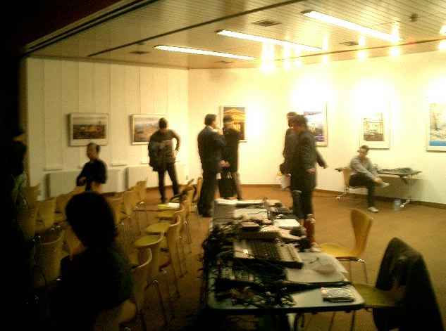 晩の「アバンギルド」でのクラブコンサートからインカレに合流しました。 写真は、デモコーナーでローランドの青木さんです。 ★ ★ ★2日目の12/16は、僕は朝イチの音楽情報科学研究会で発表、次のセッションで座長、 さらにインターカレッジ教員ミーティングに出席しました。 この日は映像上映会、インスタレーション展示もスタートしました。 あまりに忙しくて、写真はありません(^_^;)。
