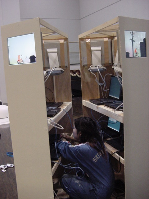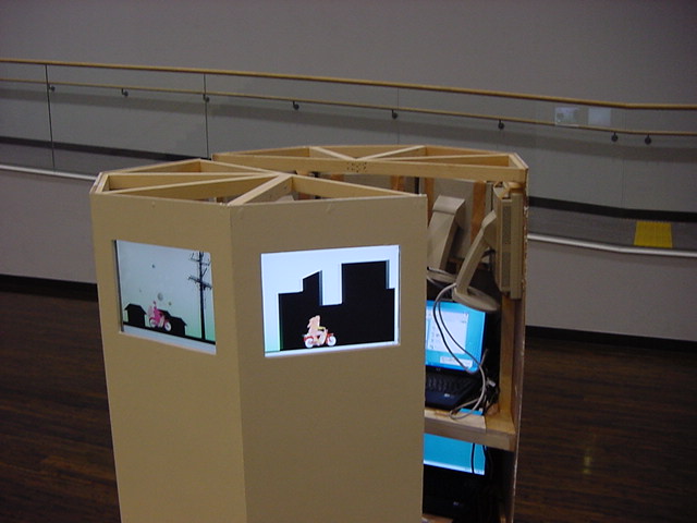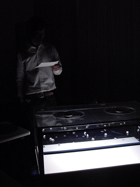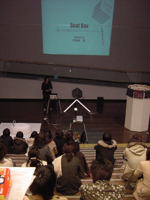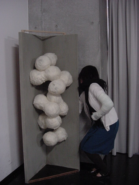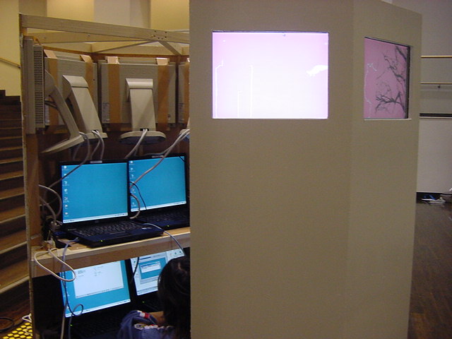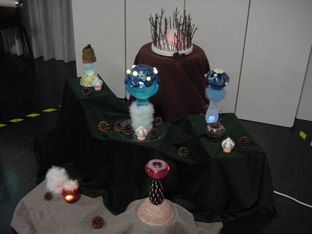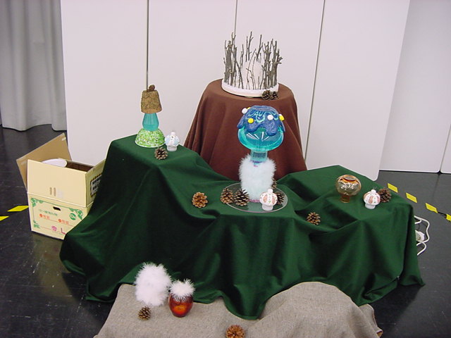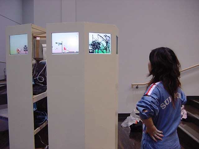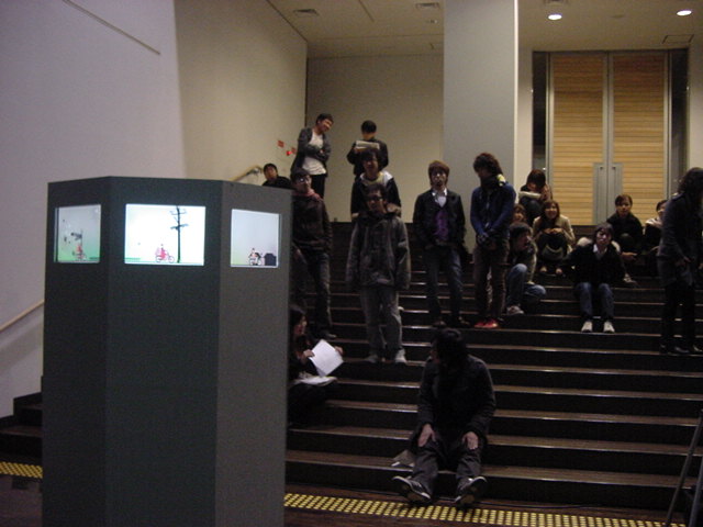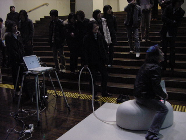 ここに撮ったのは、造形、インスタレーションなど一部だけです。 多数の映像作品、FLASH/Web系作品などは、卒展でどうぞ。 タイムキーパー、機材切替えなどで忙しく、全員は撮れませんでしたがあしからず。