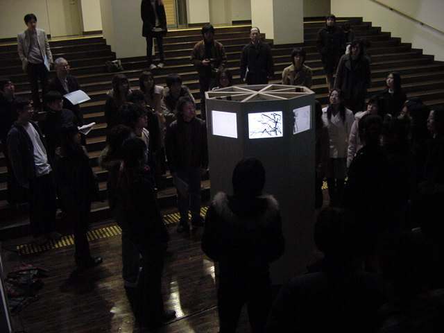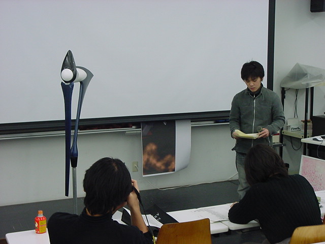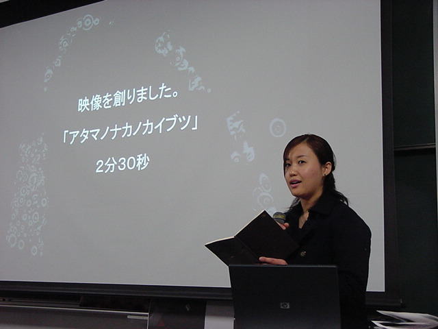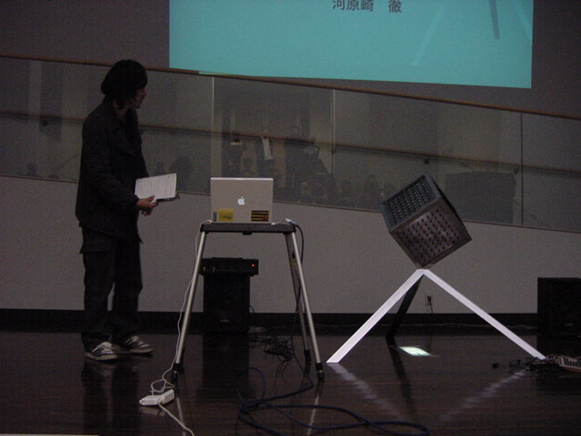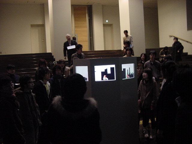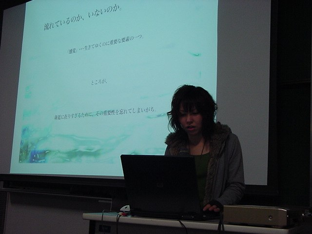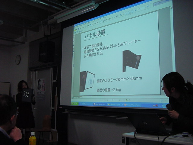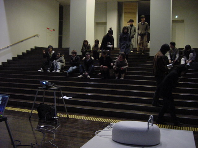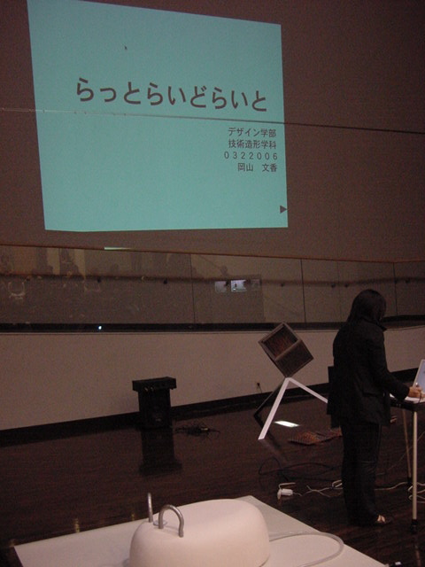 技術造形学科4期生 卒業制作研究最終審査 2007.01.27 長嶋洋一 前日仕込・早葉 当日準備・文化芸術研究センター 審査当日・発表前 発表審査(280) CAMモデル室に移動 文化芸術研究センターに移動 撮影スタジオに移動 ここに撮ったのは、造形、インスタレーションなど一部だけです。 多数の映像作品、FLASH/Web系作品などは、卒展でどうぞ。 タイムキーパー、機材切替えなどで忙しく、全員は撮れませんでしたがあしからず。