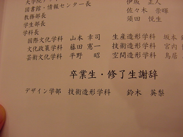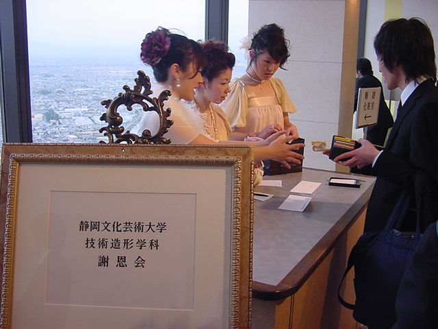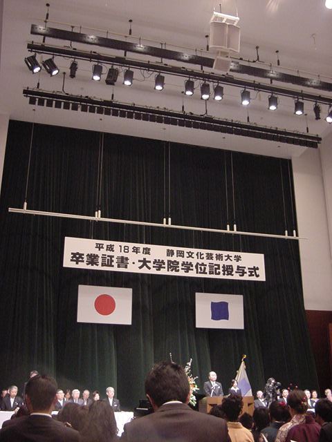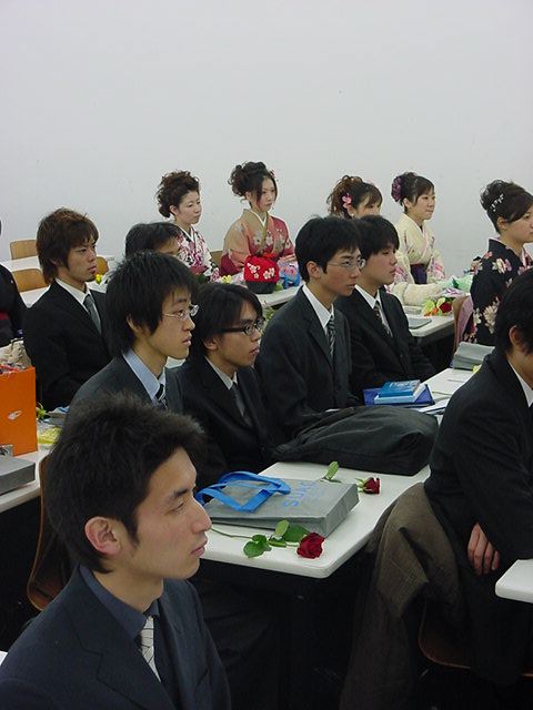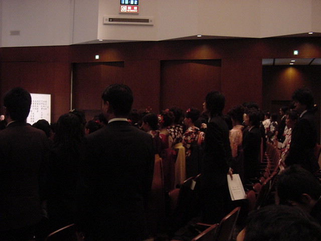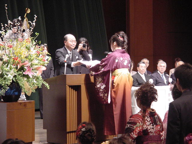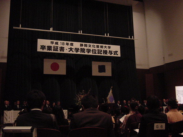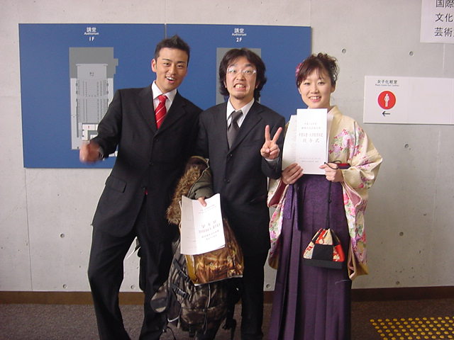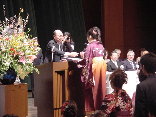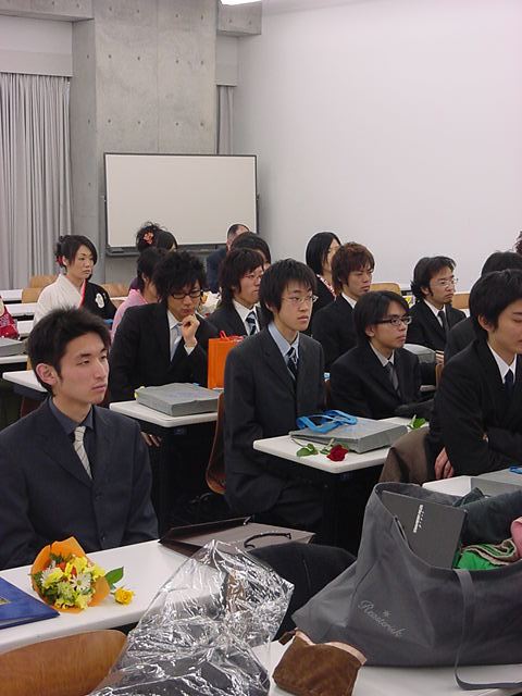 今年で3年連続このパターンとなりました。 「女子の写真ばかりが多い」との苦情もありましたが、 まぁこの日ばかりは麗しい女の子が主役ですので勘弁して下さい。 後半の写真は見苦しいので関係者以外はパスして下さい。 遂に約1000枚となりました(^_^;)。 講堂・卒業式 技術造形学科・卒業証書授与式 1次会 ホテルオークラ4階 2次会 ホテルオークラ45階 3次会 ホテルオークラ42階スイート古田ルーム