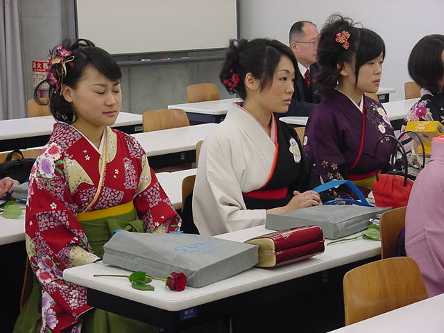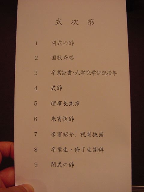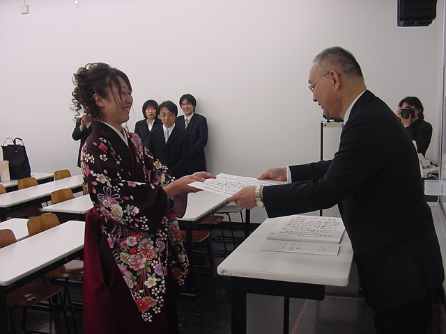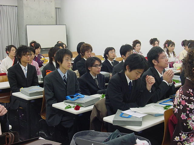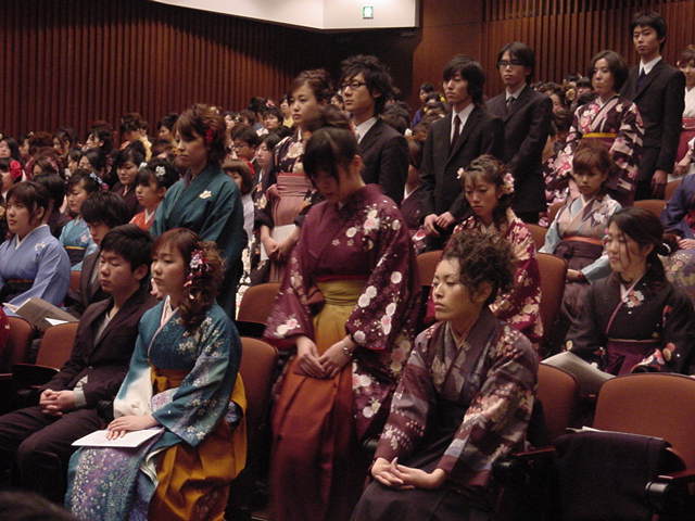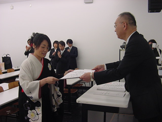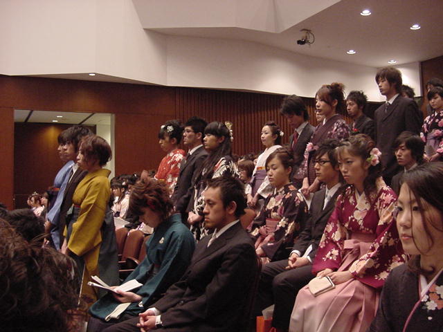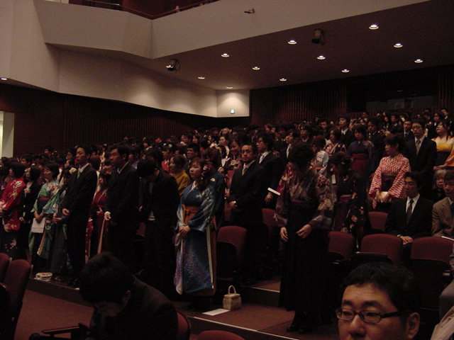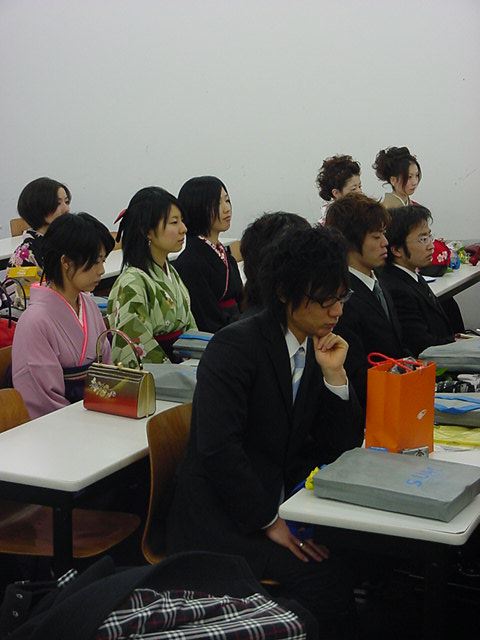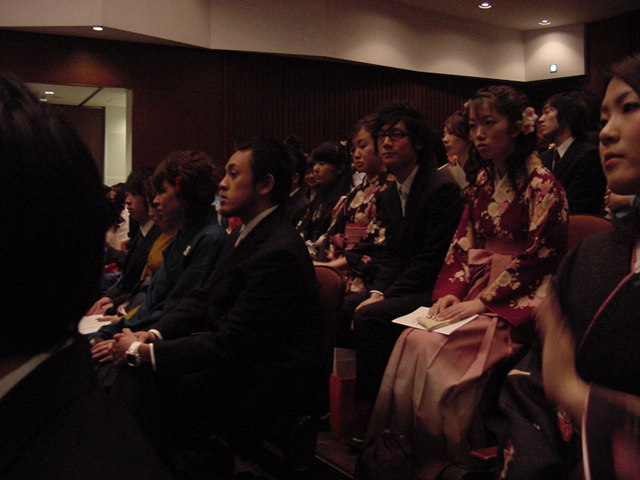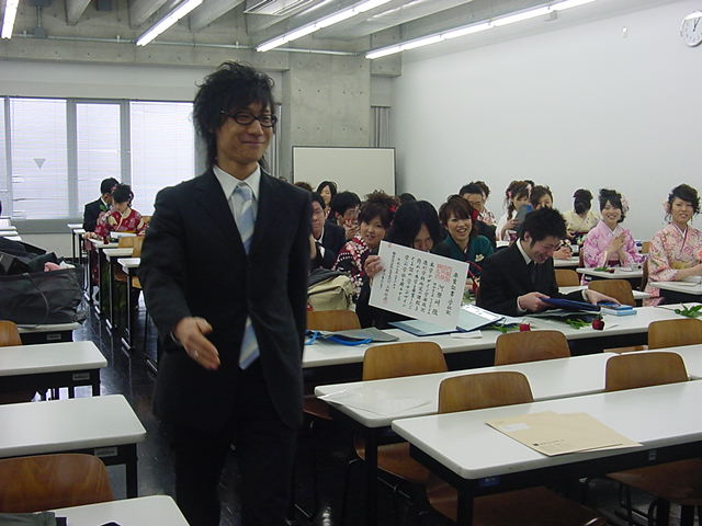 今年で3年連続このパターンとなりました。 「女子の写真ばかりが多い」との苦情もありましたが、 まぁこの日ばかりは麗しい女の子が主役ですので勘弁して下さい。 後半の写真は見苦しいので関係者以外はパスして下さい。 遂に約1000枚となりました(^_^;)。 講堂・卒業式 技術造形学科・卒業証書授与式 1次会 ホテルオークラ4階 2次会 ホテルオークラ45階 3次会 ホテルオークラ42階スイート古田ルーム