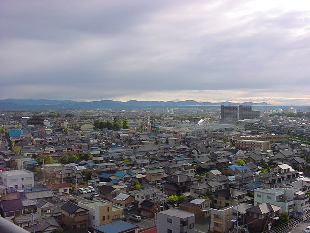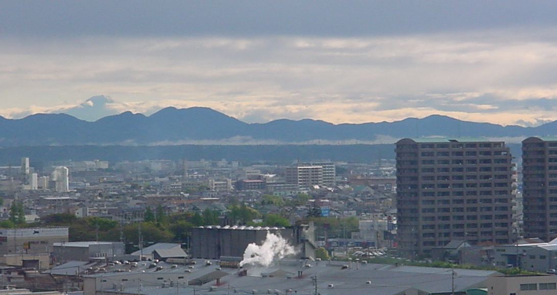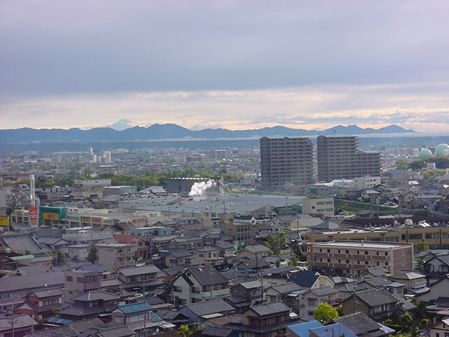 富士山が見えました 2007年4月 長嶋洋一 入学式の時に、新入生のお母さん2人が11階にやってきました。 天気がよければ富士山が見える、というのでトライしたのですが、 今年は中国からの大気汚染と黄砂のため、見えませんでした。 雨上がりの4月19日、朝6時半に研究室に出て来ると、 なんと見えました(^_^;)。