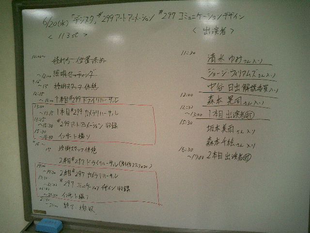 山口クンと合流して、スタジオ前に行きました。 予定はなにげに「10時開始、22時終了」なんて書いてあります。 ★ ★ ★ ★ ★ ★ ★ ★ ★ ★ ★ ★