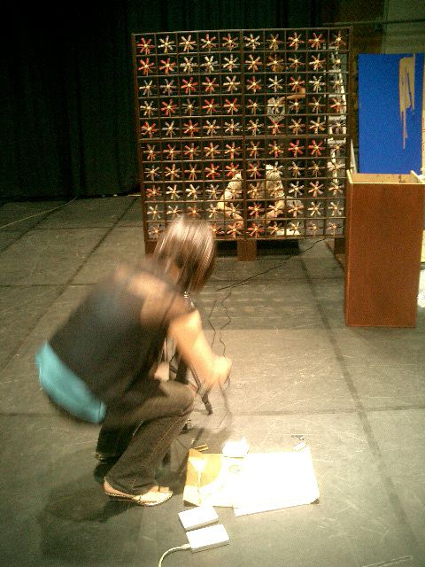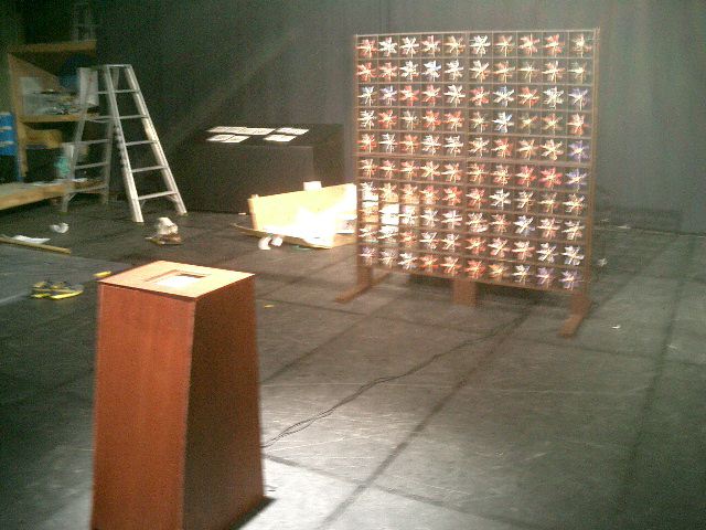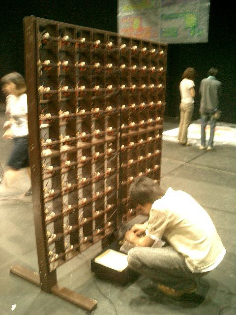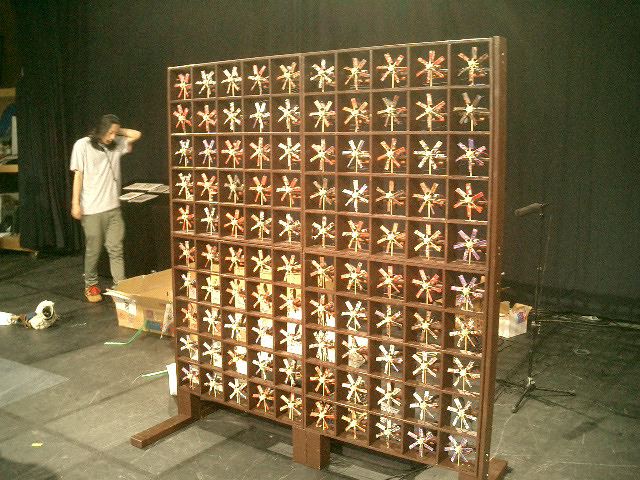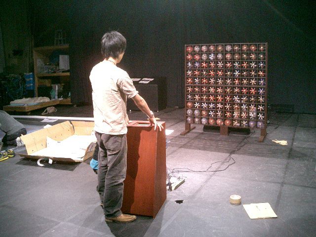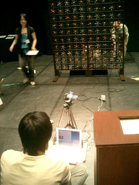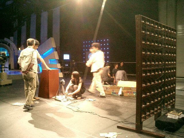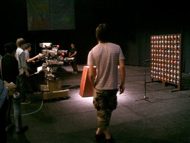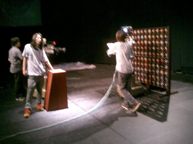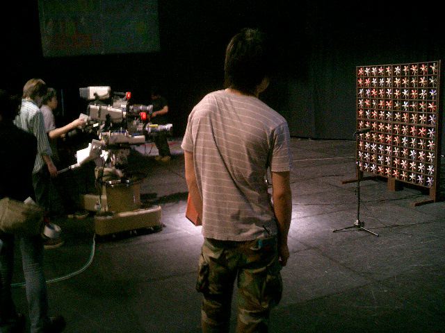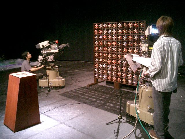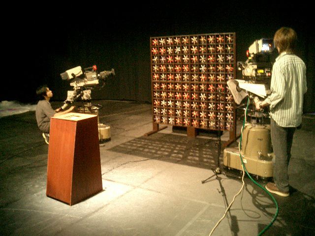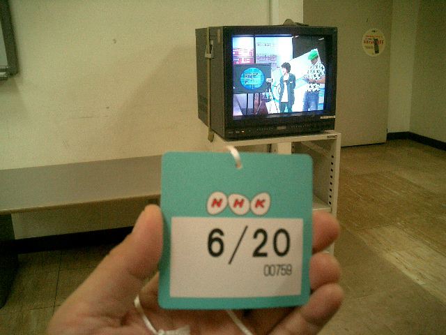 山口クンのインスタレーション作品「風見屏風」が、 映像作品「Paper Play」に続いて、2度目のデジスタ入選となりました。 この収録に立会う(トラブルに備えて)ということで、NHKに行きました。6月20日の13時にNHK西玄関から入りました。 「おかあさんといっしょ」収録の親子とかでごったがえしていました。 ★ ★