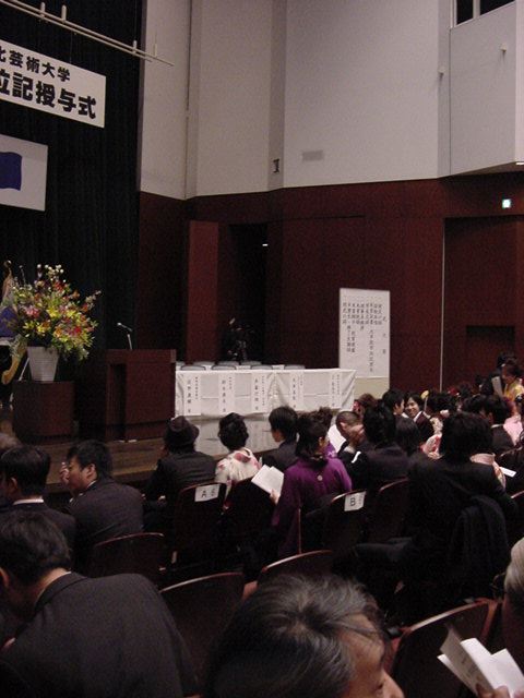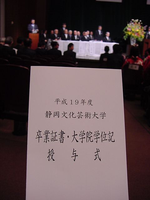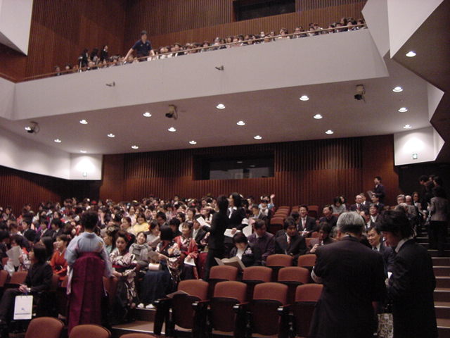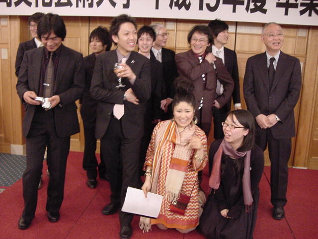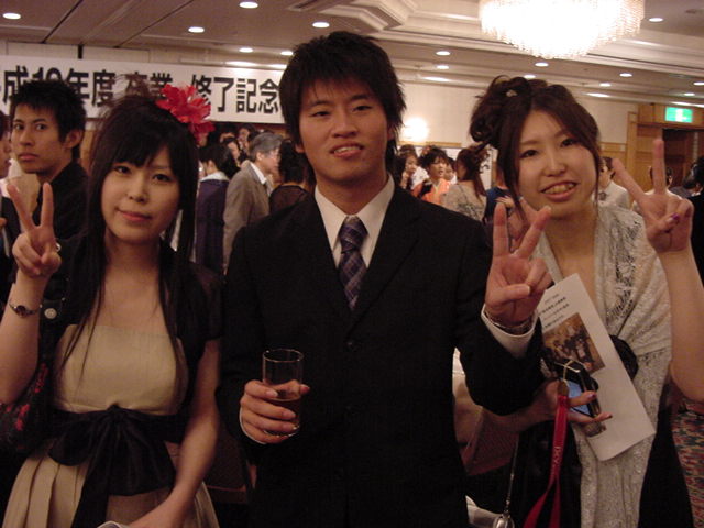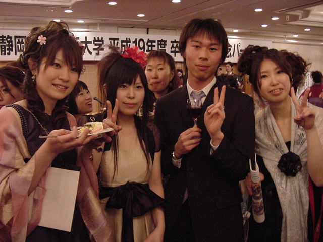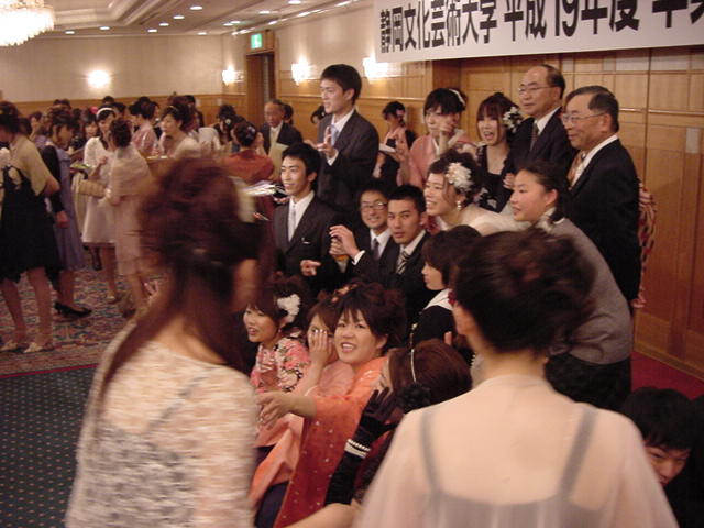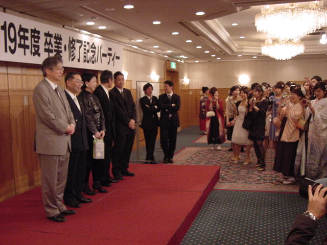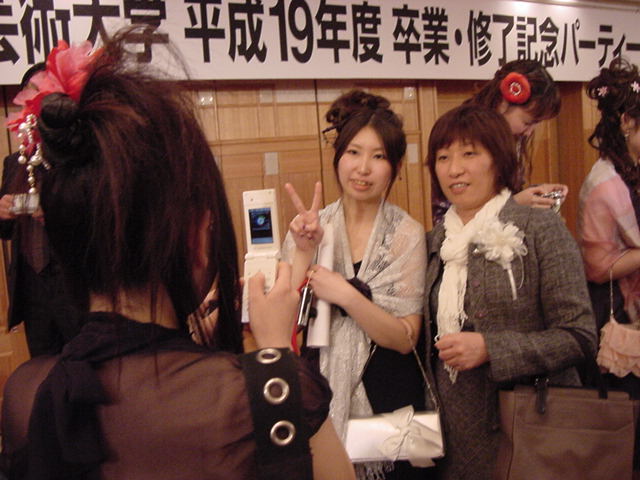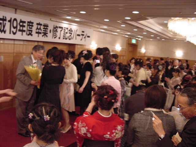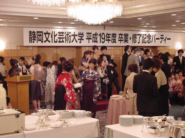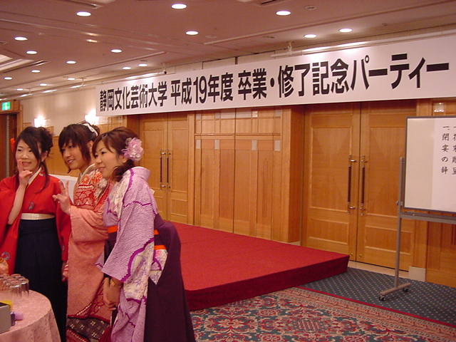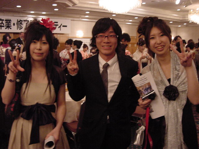 今年で4年連続このパターンとなりました。 「女子の写真ばかりが多い」との意見もありましたが、 この日ばかりは麗しい女の子が主役ですので御容赦下さい。 後半の写真は関係者以外はパスして下さい。 今年は控え目に約700枚です(^_^;)。 講堂・卒業式 講堂・大学院生授与式 技術造形学科・卒業証書授与式 1次会 ホテルオークラ3階 2次会 ホテルオークラ30階 3次会 ホテルオークラ41階スイート古田ルーム