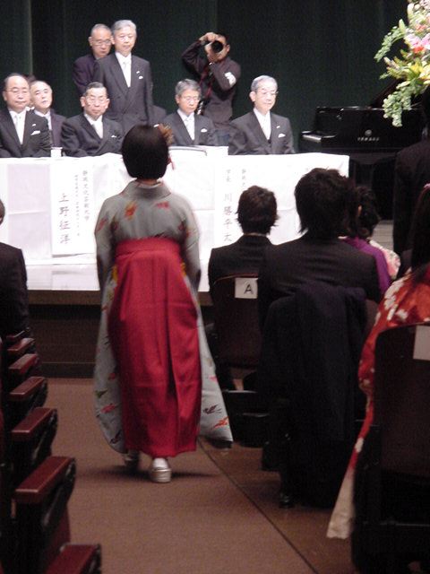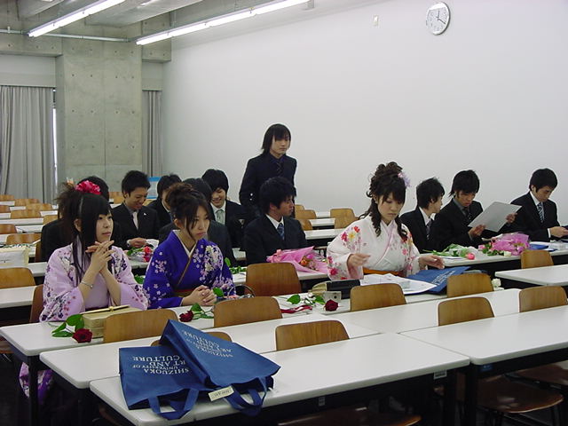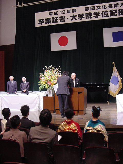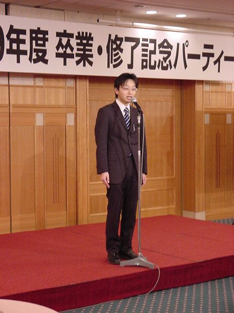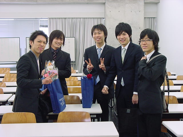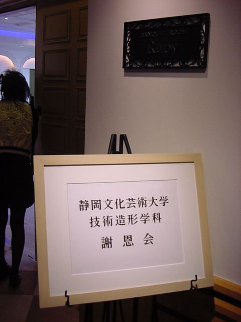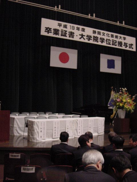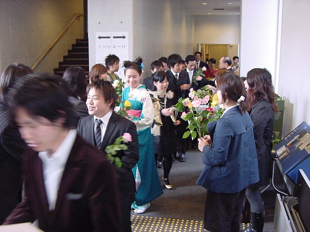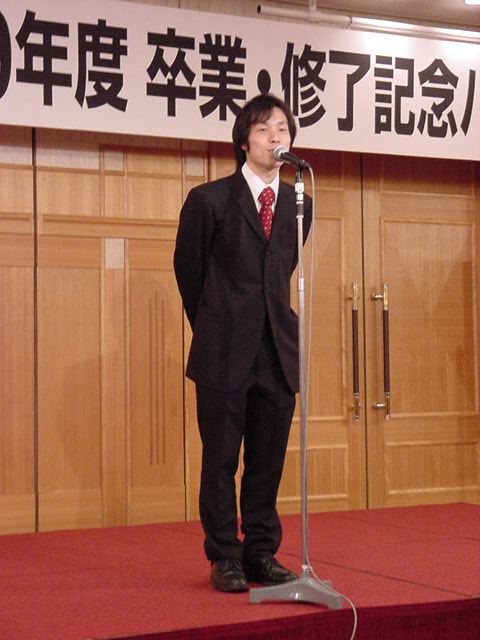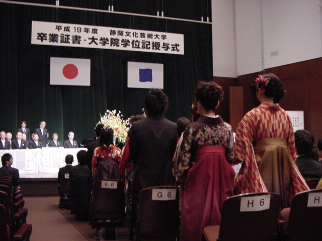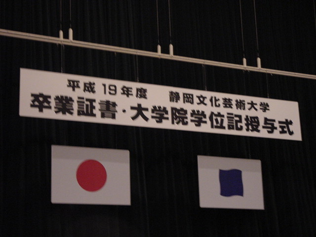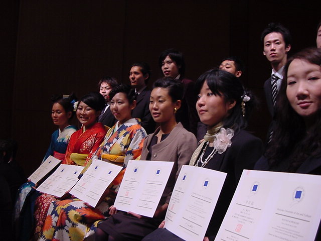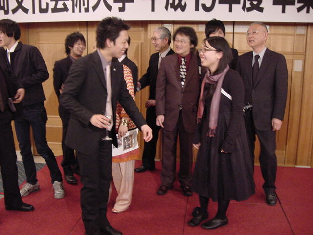 今年で4年連続このパターンとなりました。 「女子の写真ばかりが多い」との意見もありましたが、 この日ばかりは麗しい女の子が主役ですので御容赦下さい。 後半の写真は関係者以外はパスして下さい。 今年は控え目に約700枚です(^_^;)。 講堂・卒業式 講堂・大学院生授与式 技術造形学科・卒業証書授与式 1次会 ホテルオークラ3階 2次会 ホテルオークラ30階 3次会 ホテルオークラ41階スイート古田ルーム