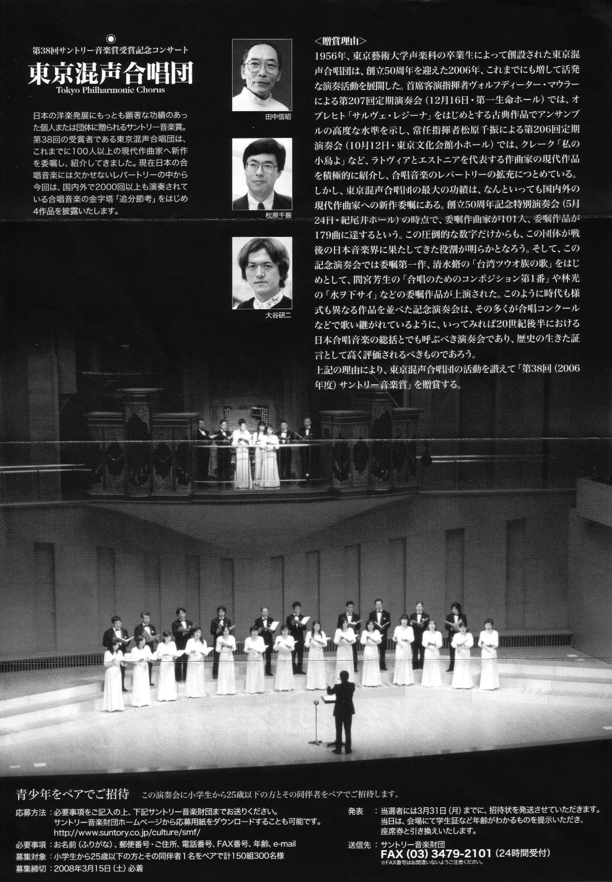 サントリー音楽賞記念演奏会、東京混声合唱団。