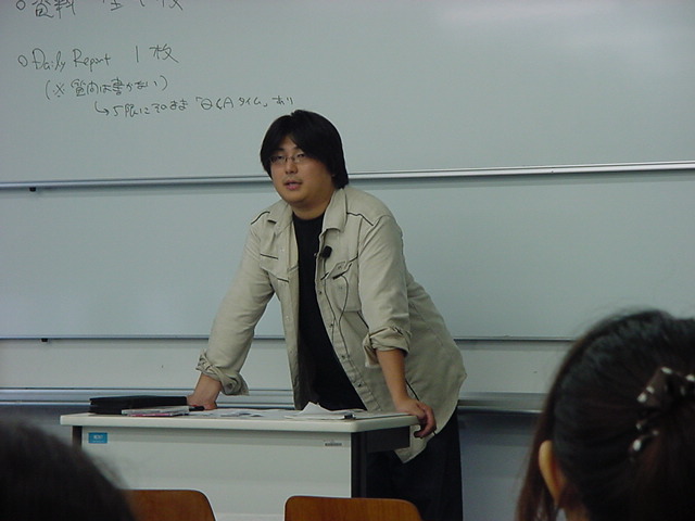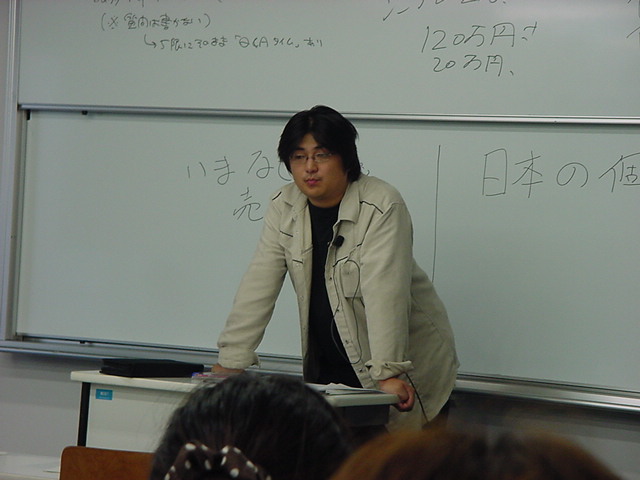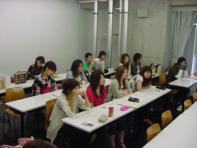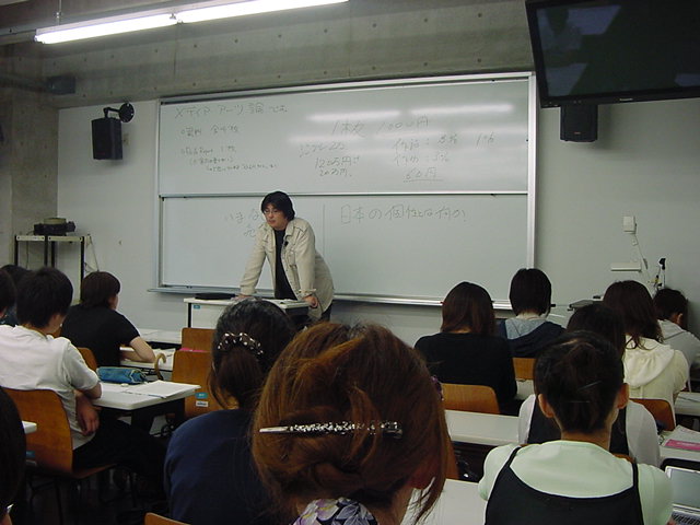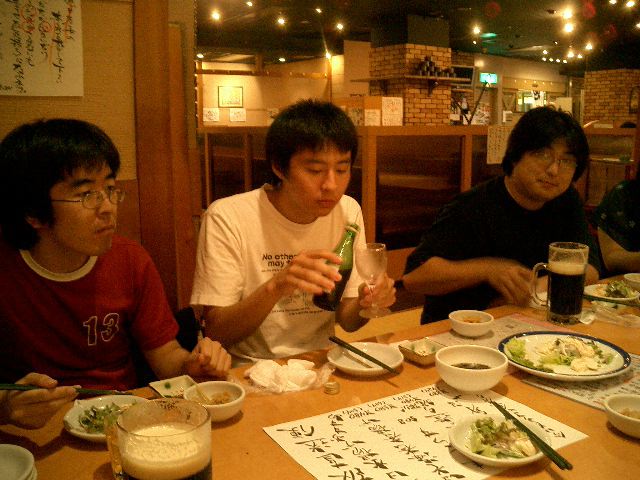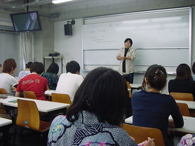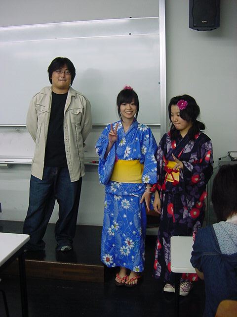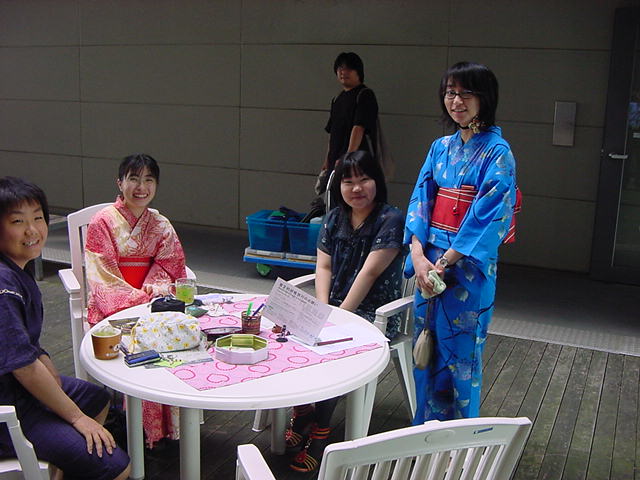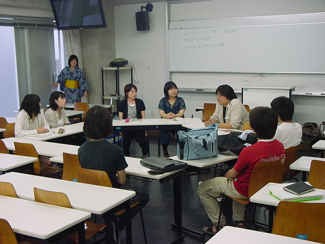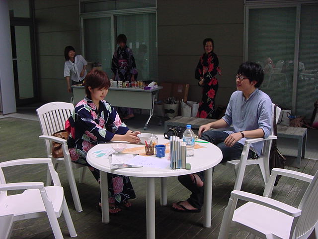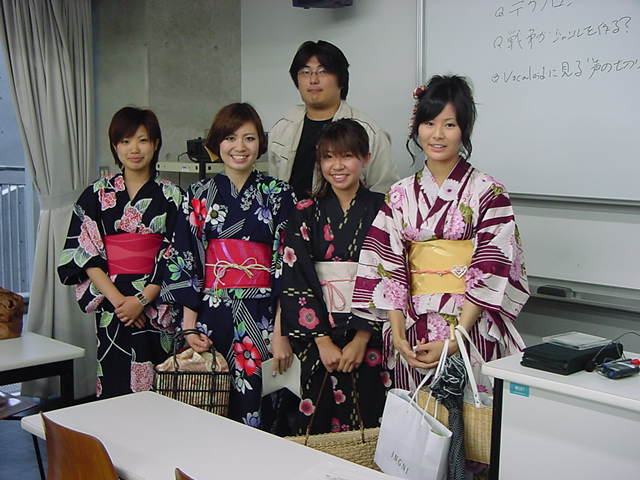 2008年7月7日は、SUAC「浴衣の日」でした。 この日は芸文専門科目「メディアアーツ論」の特別講義として、 JPOP界の風雲児、作曲家の村岡さんに講義をしてもらいました。 講義の後で、オフレコ話が満載の懇談会があり、 さらに有志で懇親会に行きました。 7/7はアースデイという事で、海鮮マルシェも2時間にわたって、 消灯・蝋燭といういいカンジでした。 たくさん美味しく飲みましたので詳細は記憶しておりません。(^_^;)