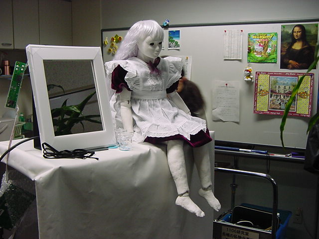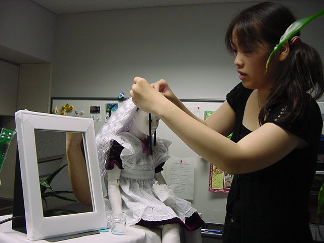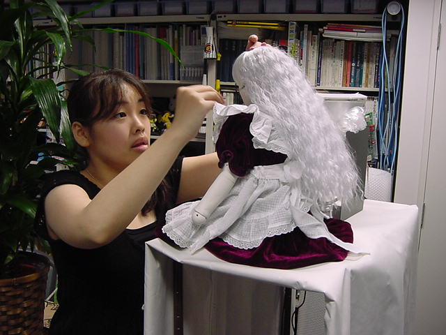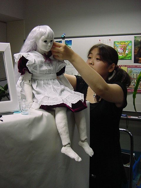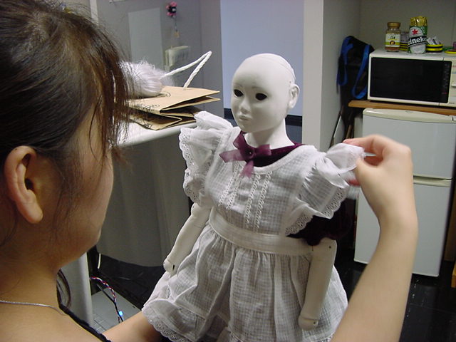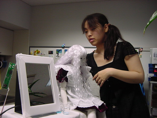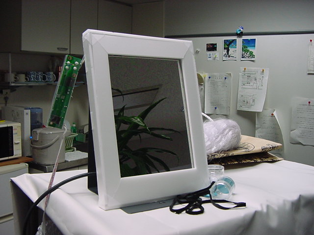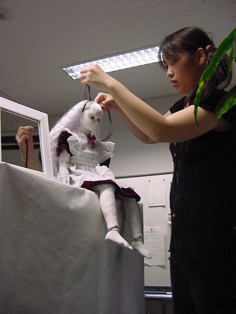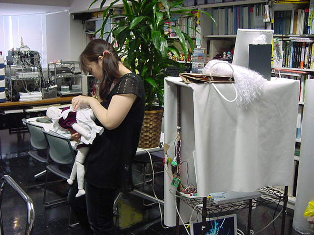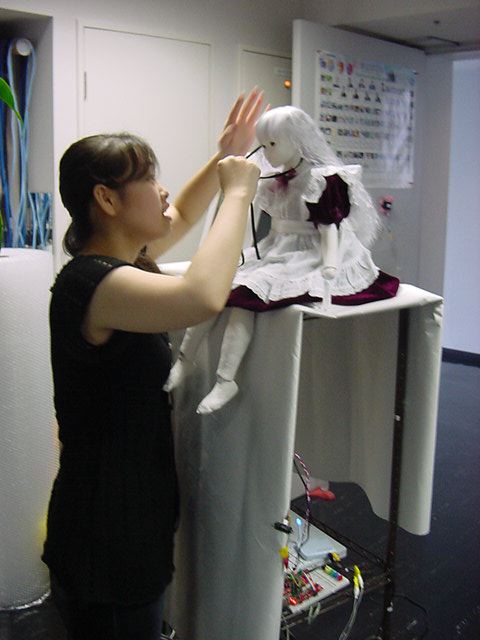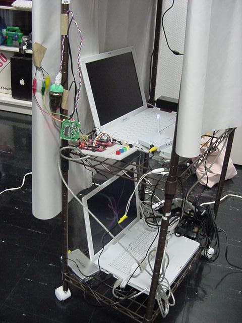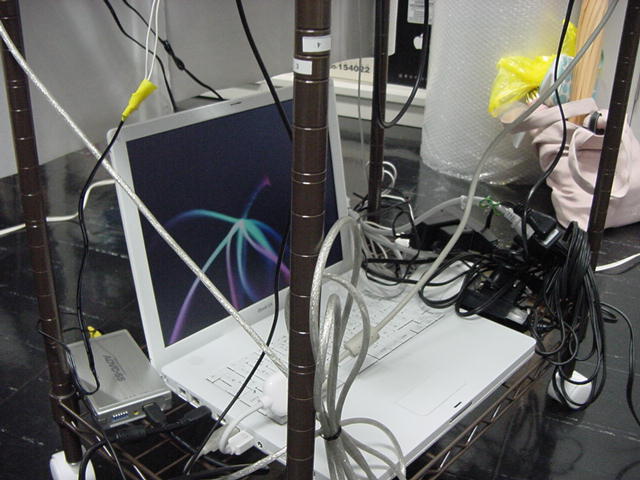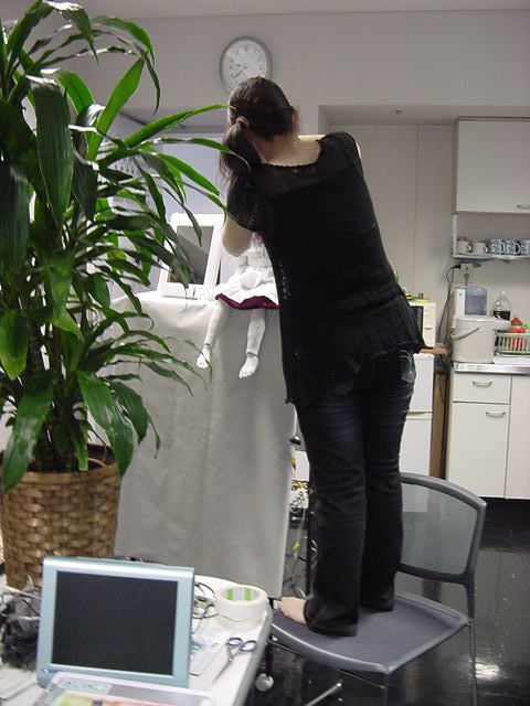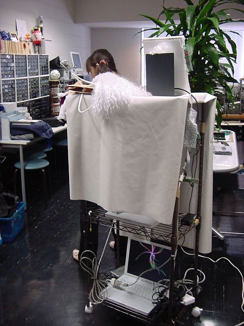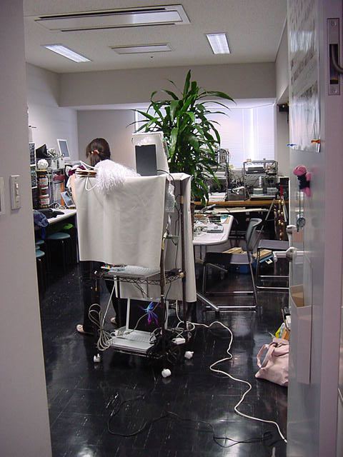 2008年7月18日は、技術造形学科4回生の「技術造形総合演習II」の最終合評会でした。 朝から1106研究室で、発表の準備をする、Comm系ゼミの松永さんです。 これはあくまで卒業制作に向けた途中の段階ですが、なかなか期待させる作品です。