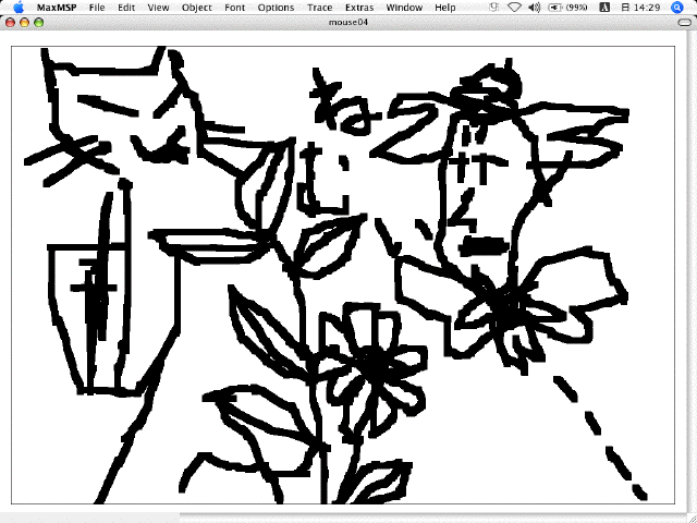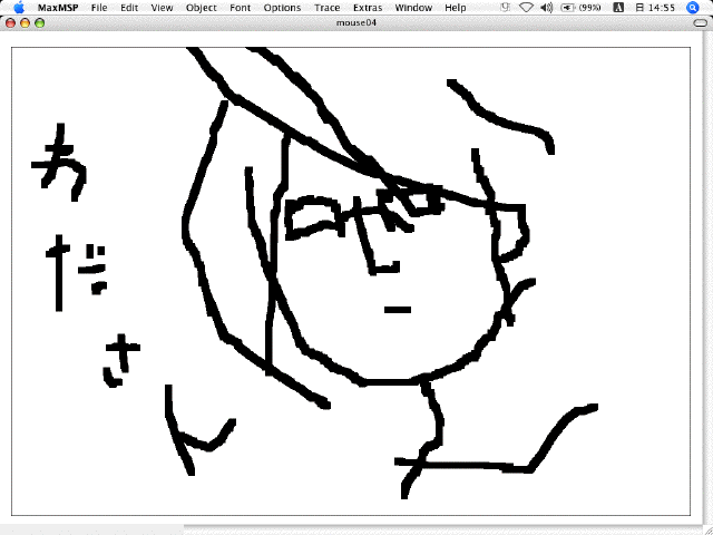 2008年8月2-3日の オープンキャンパス で展示した、 卒業生の岡山文香さんの作品「乗るマウス」(正式には「らっとらいどらいと」)の 作品集です。 描画の風景 作品集