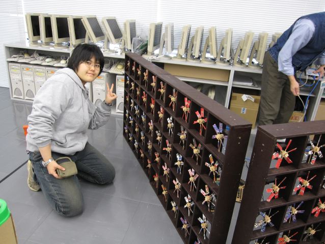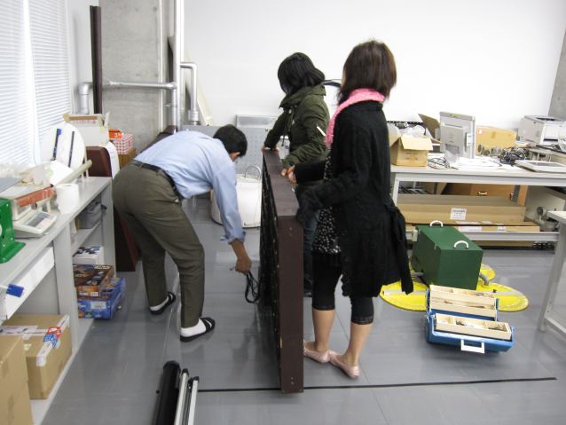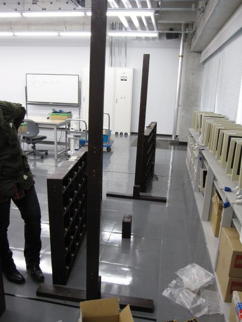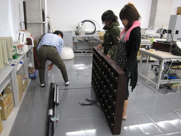 メディアアートフェスティバル(MAF2008)にて、 卒業生のインスタレーション作品を復刻展示する制作プロジェクト「第29期・虎の穴」の1回生3人と、 山口翔クンの作品「風見屏風」「Tiny Living」を組み立てました。 最初の4枚以外の写真は、メンバーの山本さんのデジカメによるものです。 もう1日で、なんとか目処をつける予定です。