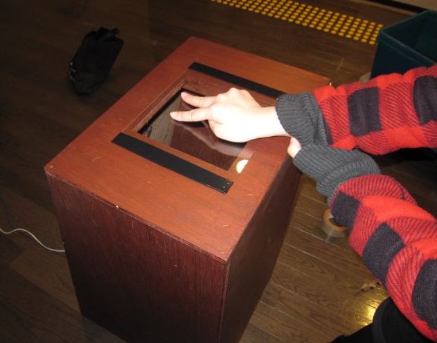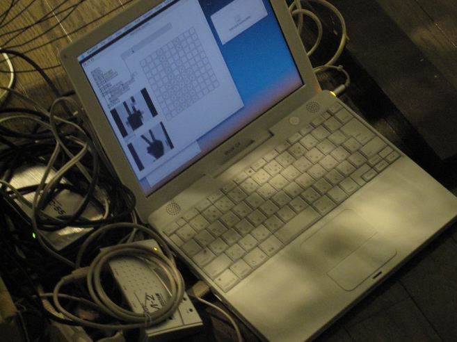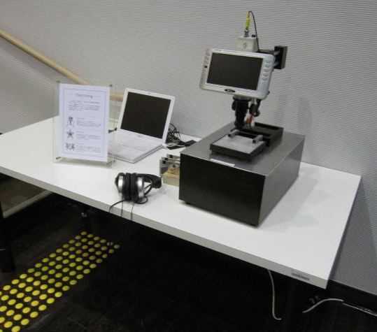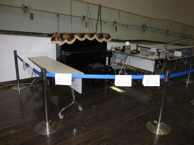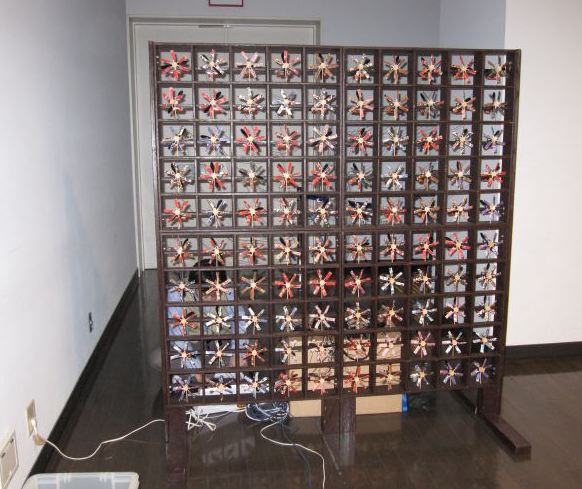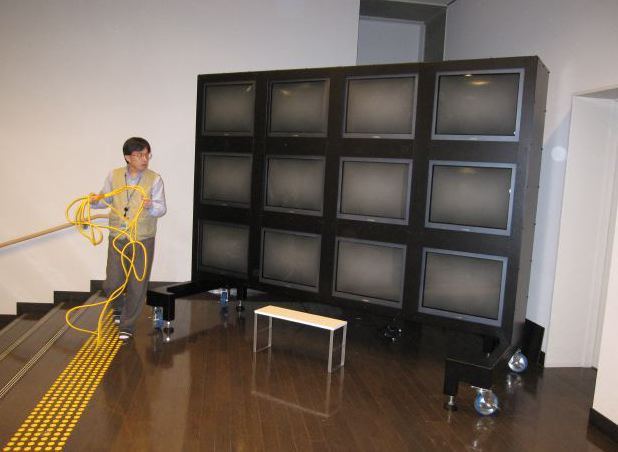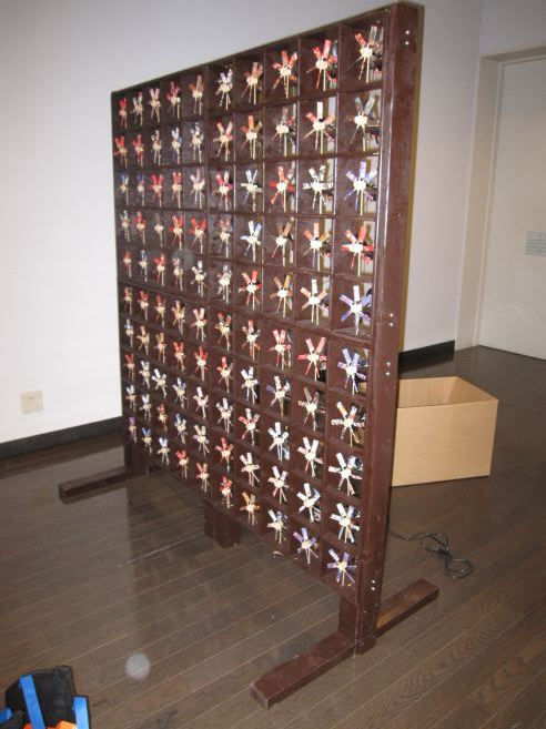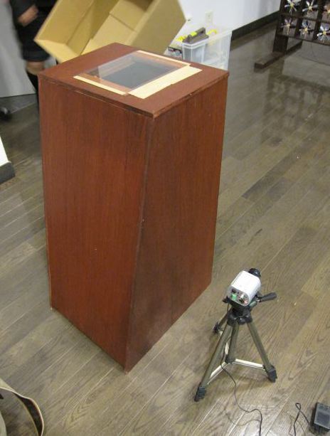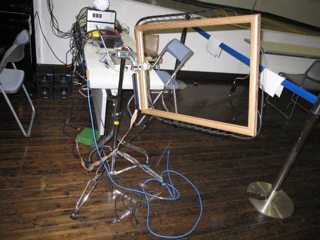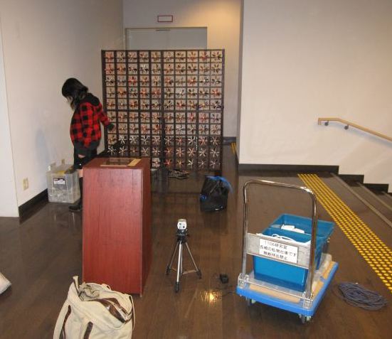 メディアアートフェスティバル(MAF2008)の設置が始まりました。 「サウンドデザイン演習」のメディア2回生の手伝いでいろいろ搬入を終えた放課後に、 「第29期・虎の穴」の2人とともに、卒業生作品の復刻展示の設置を行いました。 写真は、メンバーの山本さんのデジカメによるものです。