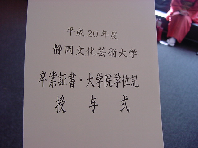 SUAC卒業式2009 2009年3月 長嶋洋一 今年もまた、オークラを上がっていく、このパターンとなりました。 学年担当で呼名を行ったので、いつもの客席でなく、 卒業式の楽屋裏から撮れました。 後半の写真は関係者以外はパスして下さい。 今年は控え目に約800枚です(^_^;)。 講堂・卒業式 技術造形学科・卒業証書授与式 1次会 ホテルオークラ4階 2次会 ホテルオークラ30階 3次会 ホテルオークラ42階スイート古田ルーム